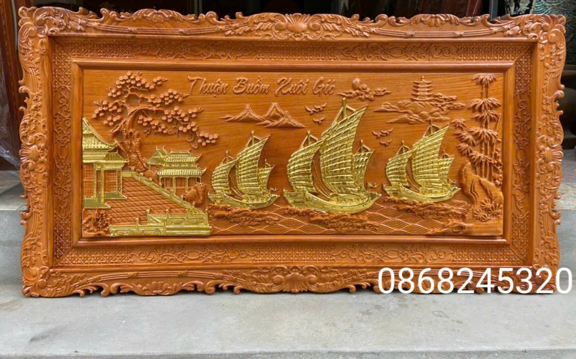 Tranh thuận buồm xuôi gió gỗ Pơmu . Kt : ngang 1m82 cao 85 dày 4.5p . Zalo:0342489689