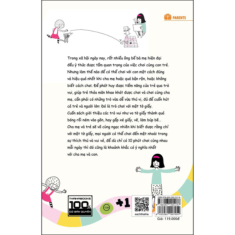 Có những trò chơi mà ai cũng có thể học, vận dụng hoặc thay đổi một cách linh hoạt, những trò chơi được sáng tạo bởi chính những đứa trẻ sau khi va chạm thực tế sẽ chính là những trò chơi có thể gắn kết gia đình, kéo dài theo thời gian và giúp phát huy tính sáng tạo cua trẻ. Và những trò chơi đó đã được tác giả Lee Im-sook tổng hợp và viết ra trong “Trò chơi cho con: Trò vui dễ nhất thế gian với một tờ giấy”.