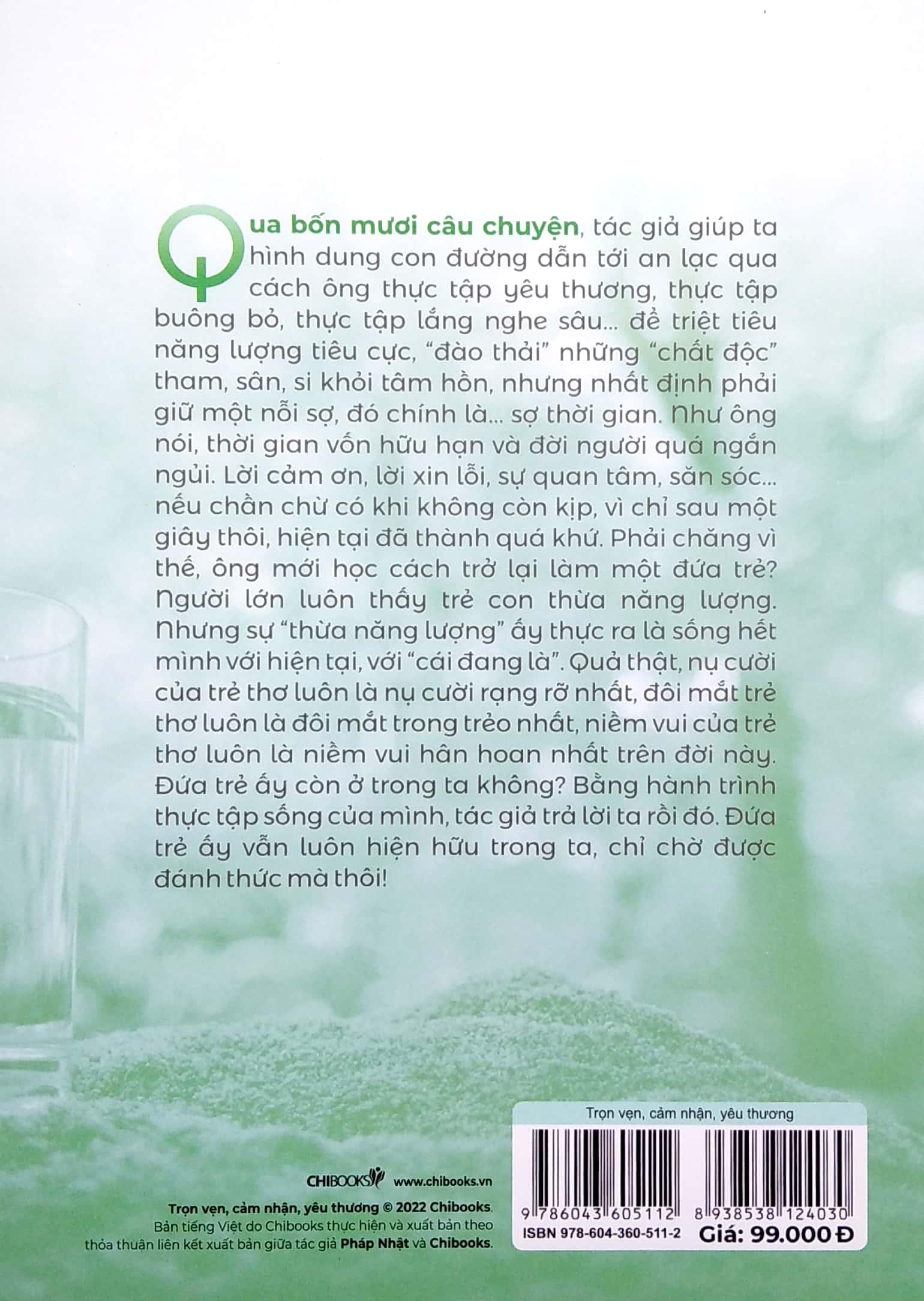 Đôi khi, bạn ngần ngại trước một cuốn sách dạy ta cách có được hạnh phúc, bởi lo gặp phải những triết lý khó hiểu, hoặc những bài học chung chung, hay quá nhiều kỹ năng khiến mình thêm hoang mang. Thế nhưng “Trọn vẹn, cảm nhận, yêu thương”, tác phẩm của thầy Pháp Nhật, lại dẫn dắt bạn đến với hạnh phúc theo cách thật nhẹ nhàng, tự nhiên.