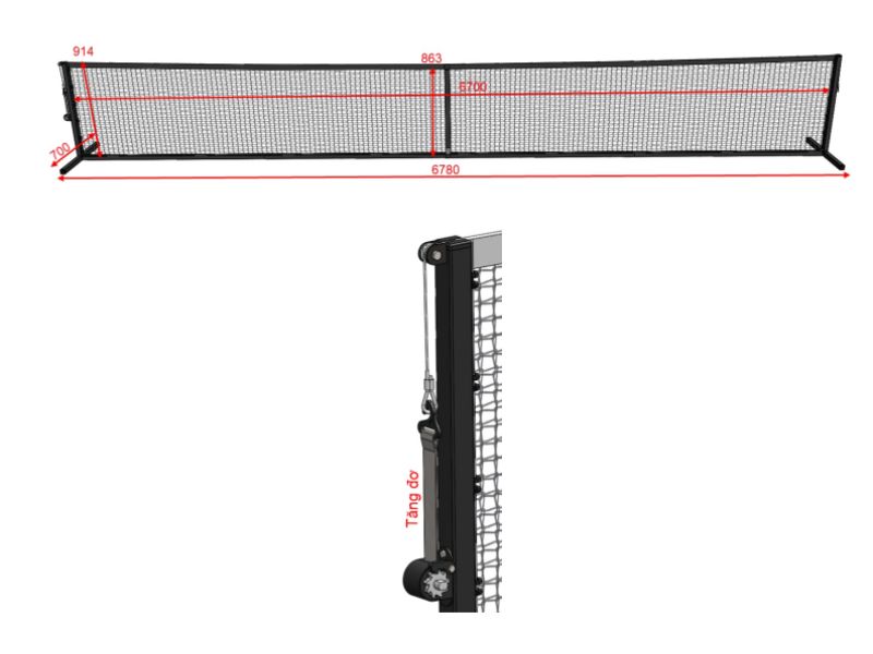 Thông tin sản phẩm lưới Pickleball 330048 -330048C - Thương hiệu: VifaSport. - Chiều dài lưới: 6.7m. - Chiều cao lưới 330048: 0.86m. (mã 330048C cao 0.9m) - Cáp bọc nhựa Φ 5mm, dài 7.4m.