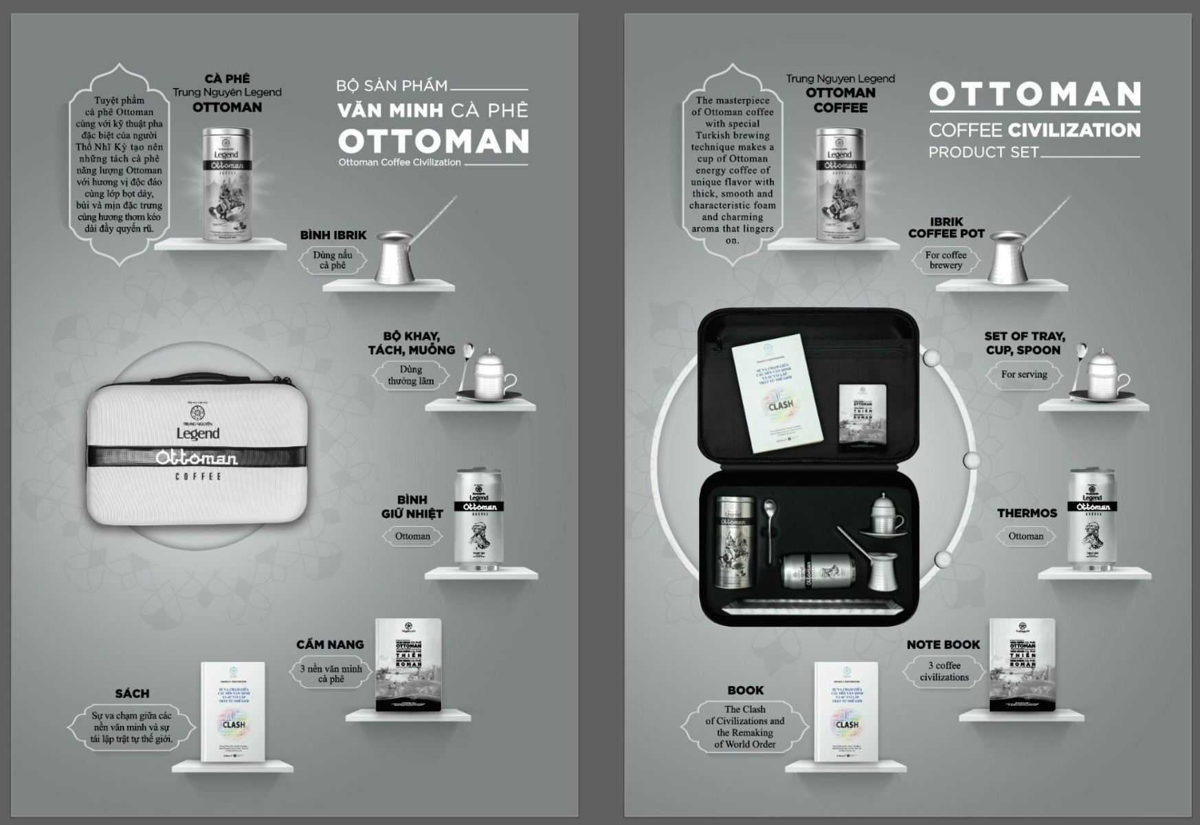 Lấy cảm hứng từ Cà phê Ottoman – Cà phê của Đức Tin Thần Thánh, Trung Nguyên Legend mang đến cho bạn bộ sản phẩm Văn minh Cà phê Ottoman với cà phê và bộ công cụ pha chế và thưởng lãm truyền thống theo phong cách Ottoman sẽ giúp bạn có những phút giây thực hành nghi thức pha chế huyền thoại này, với niềm tin rằng bạn sẽ có được đức tin vững chắc vào sức mạnh của bản thân để chinh phục những chí hướng lớn của đời mình.