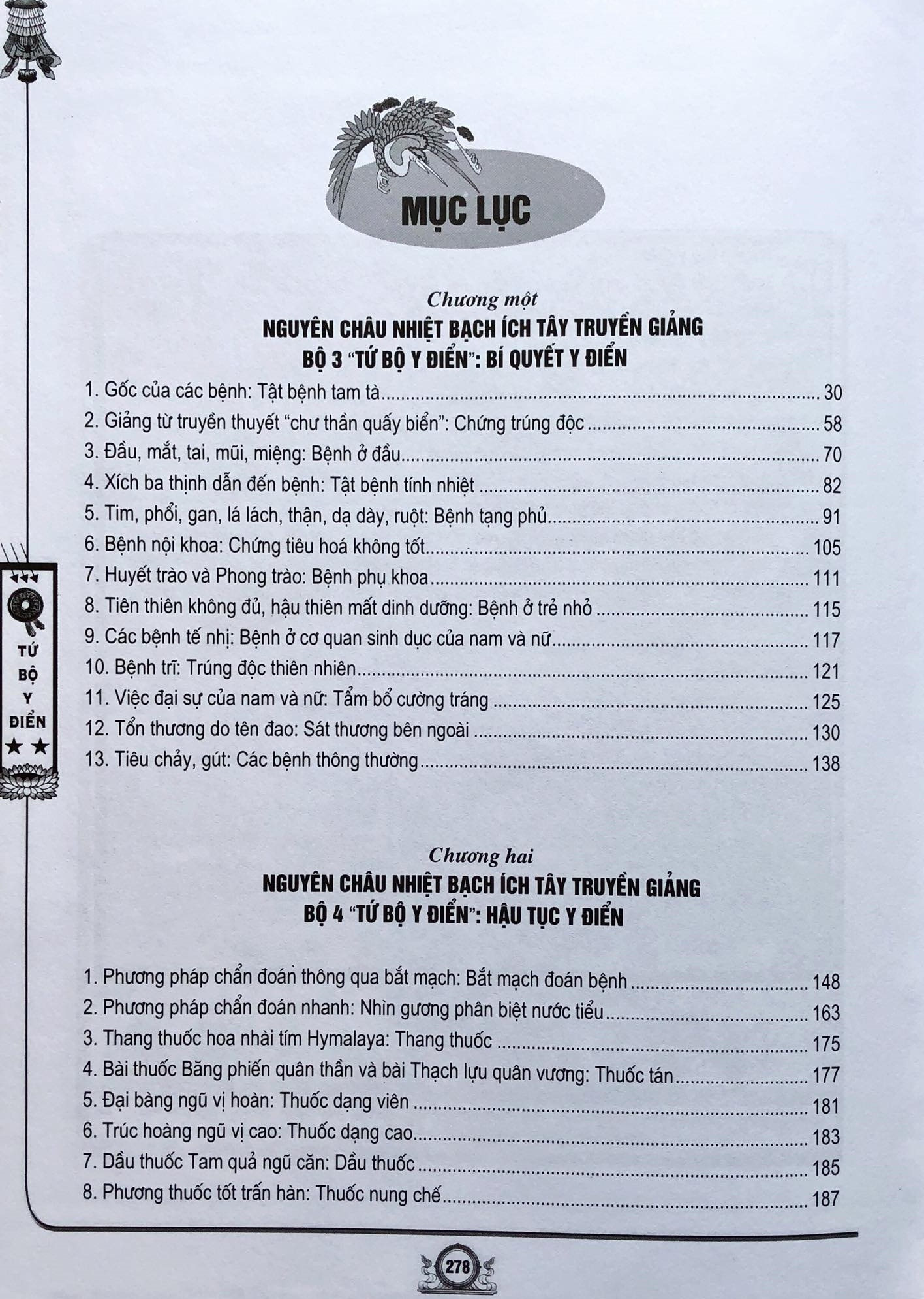 Sách này tổng hợp tinh hoa của bộ thứ 3 và thứ 4 của Tứ bộ y điển, phong phú và thực dụng. Nó có thể đọc riêng, có thể kết hợp đọc cùng Đồ giải tứ bộ y điển – phần y lý và dưỡng si