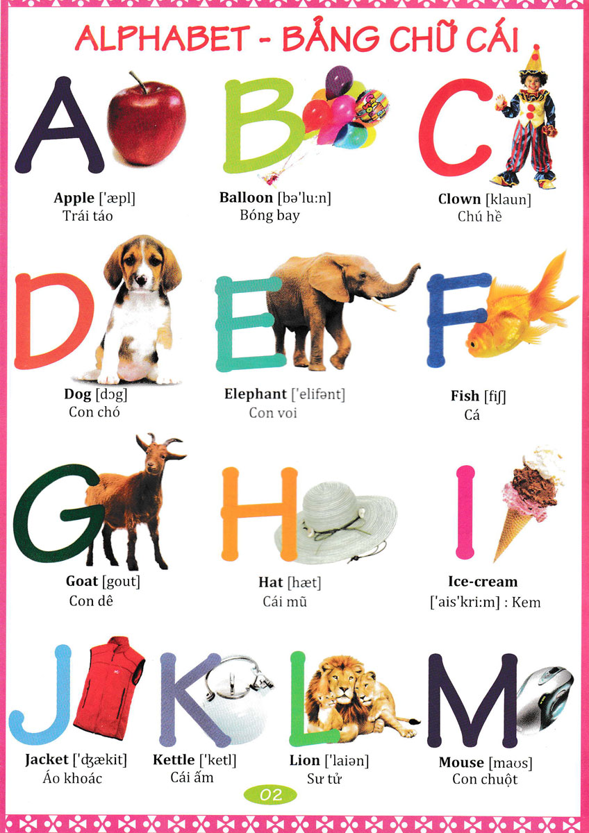 Từ Điển Anh Việt Bằng Hình ẢnhTừ Điển Anh Việt Bằng Hình Ảnh gồm các nội dung:Alphabet - Bảng chữ cáiNumbers (1-10) - Số (1-10)Colours - Màu sắcFamily - Gia đìnhThe house - NhàInside the house - Bên ...