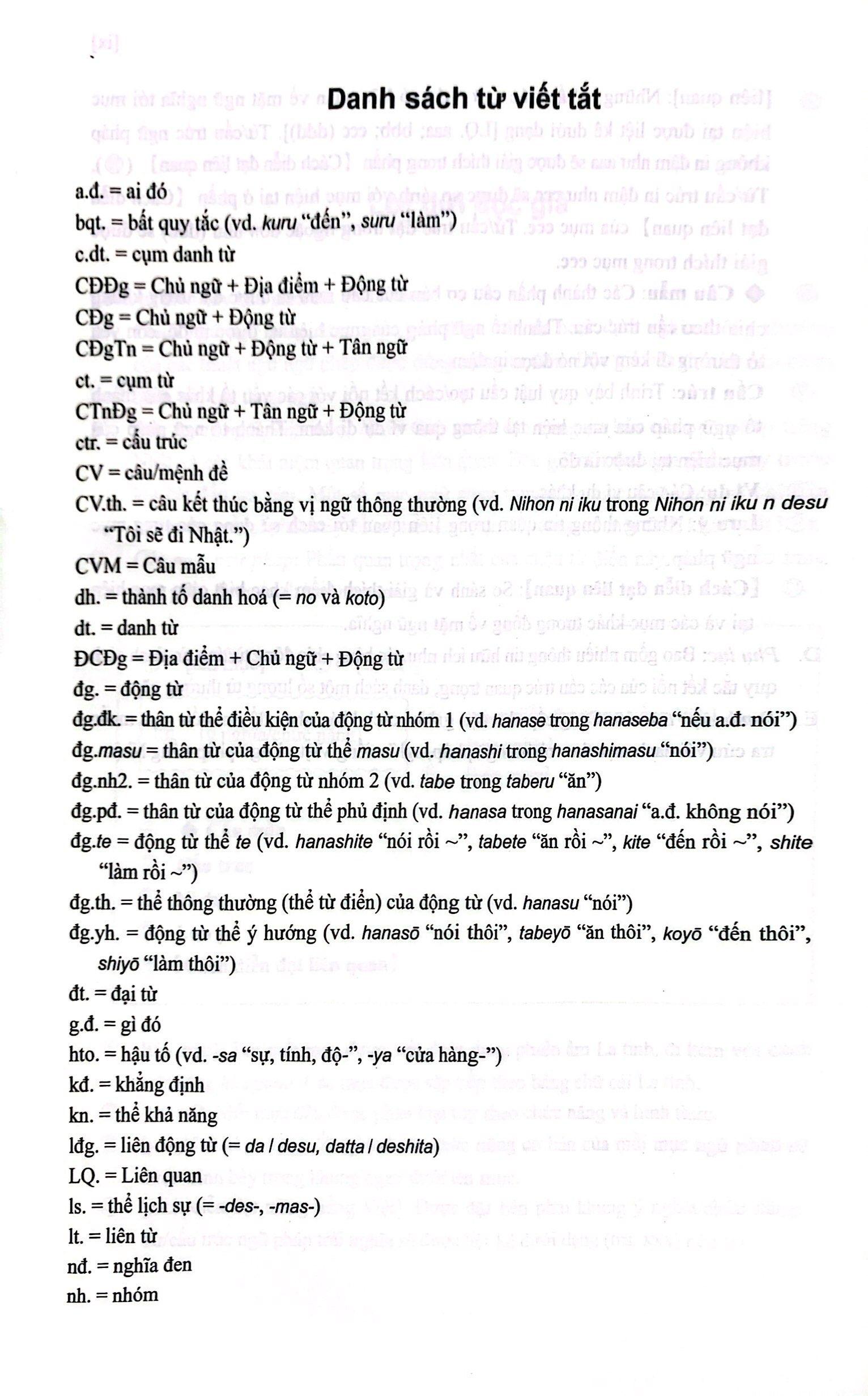 • Phụ lục: cách chia động từ/tính từ, các cặp tự động từ-tha động từ, hình thái kết nối của một số cấu trúc quan trọng, ko-so-a-do, số đếm và lượng từ, từ ghép…