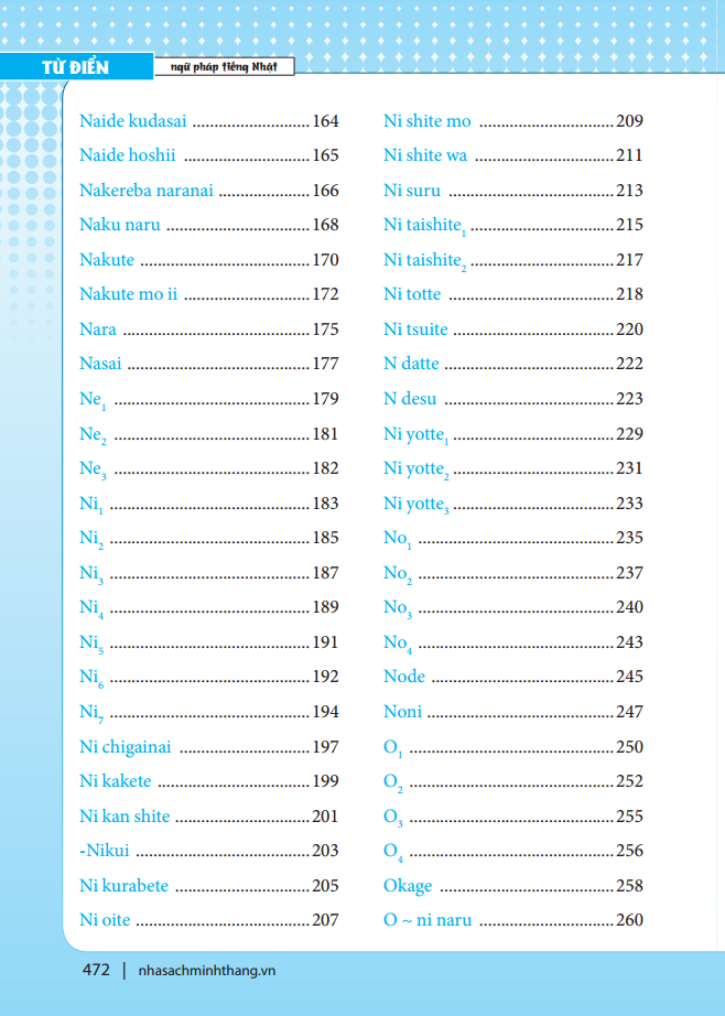 Thấu hiểu được vấn đề này chúng tôi đã dày công tìm hiểu và biên soạn cuốn giáo trình “Từ điển ngữ pháp tiếng Nhật”. Cuốn giáo trình bao gồm khoảng 300 mẫu câu từ trình độ N5 - N3. Ở mỗi cấu trúc đều có công thức kết hợp, ý nghĩa, cách sử dụng, rất nhiều ví dụ sinh động sát thực tế kèm theo, và đặc biệt ở phần chú ý chúng ta sẽ được so sánh với những biểu hiện có ý nghĩa tương tự hoặc liên quan.