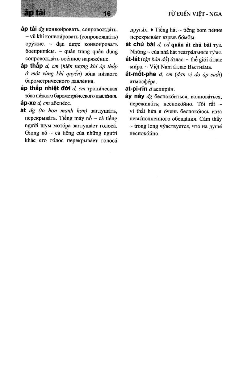 Cuốn từ điển Nga- Việt này dành cho đối tượng là người Việt học và tra cứu tiếng Nga: học sinh, sinh viên, người tự học tiếng Nga hoặc học có hướng dẫn. Với quan điểm đó, mục từ của Từ điển được lựa chọn từ những từ có tần suất xuất hiện cao trong tiếng Nga hiện đại, là từ thông dụng trong hoạt động giao tiếp và trong các văn bản. Các ví dụ trong phần nghĩa của từ giải thích ngữ nghĩa và cách sử dụng từ giúp người đọc biết cách dùng, nhớ từ và hình thành thói quen sử dụng từ.