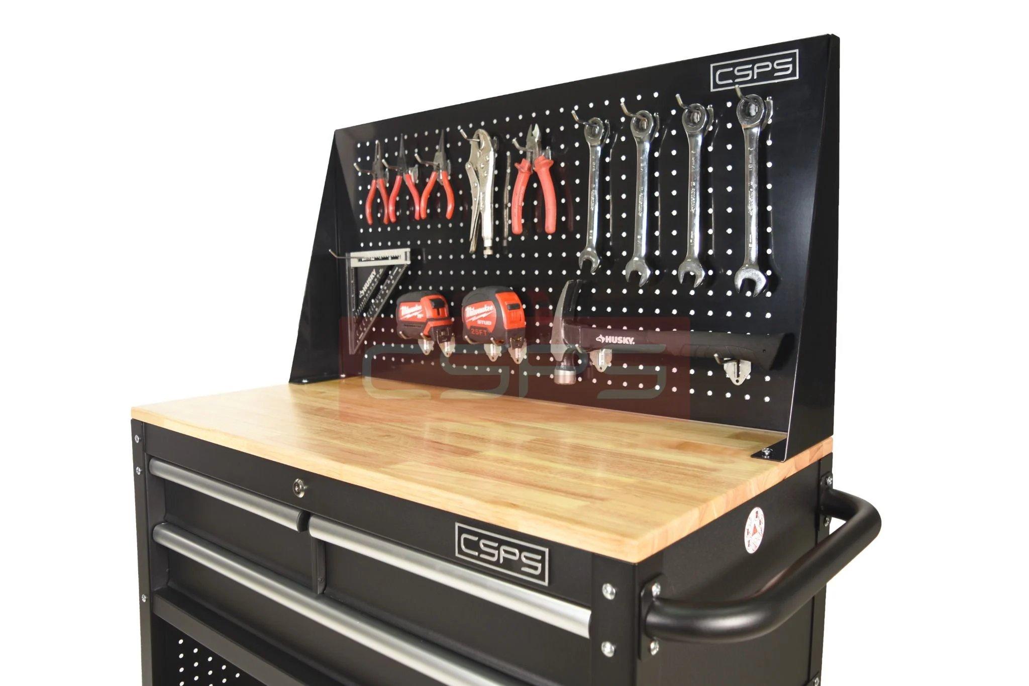Tủ dụng cụ CSPS 7 ngăn kéo, mặt ván gỗ và vách lưới chất lượng cao. THÔNG SỐ KỸ THUẬT 1 THÔNG SỐ CHUNG Kích thước sản phẩm: 76.4 cm Ngang x 46.2cm Sâu x