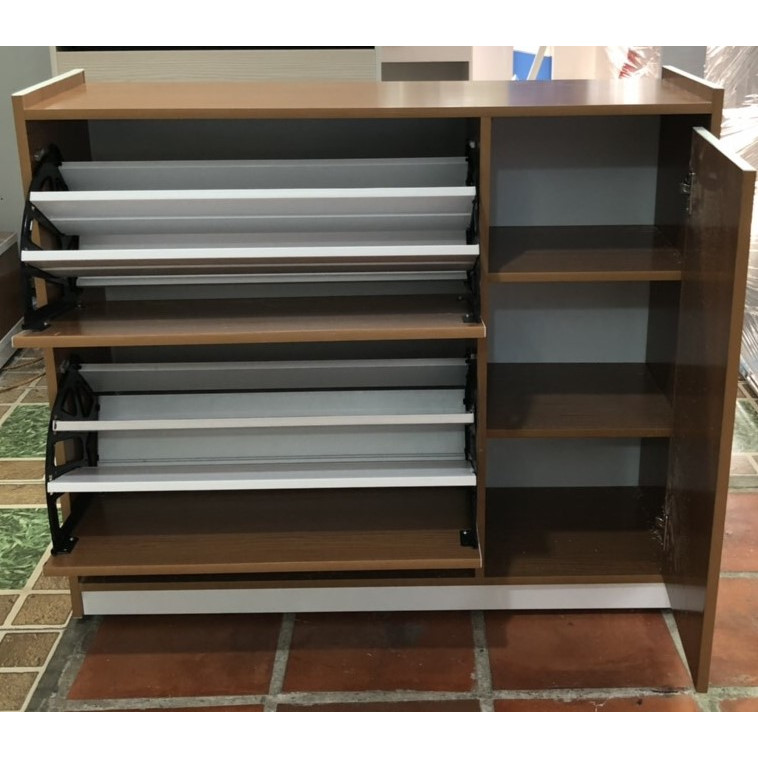 - Kích thước: - Tủ 2 cánh : Dài 60cm, Rộng 32cm, Cao 92cm. - Tủ 4 cánh : Dài 120/140cm, Rộng 32cm, Cao 92cm. - Chất liệu: Gỗ MDF phủ melamin chống xước chống nước dễ dàng vệ sinh. - Phong cách: Hiện Đại - Công năng: Sử dụng để cất giày dép tại căn hộ, tại văn phòng, tại quán cafe, tại shop spa salon vô cùng thích hợp. - Cấu tạo: Lắp ráp