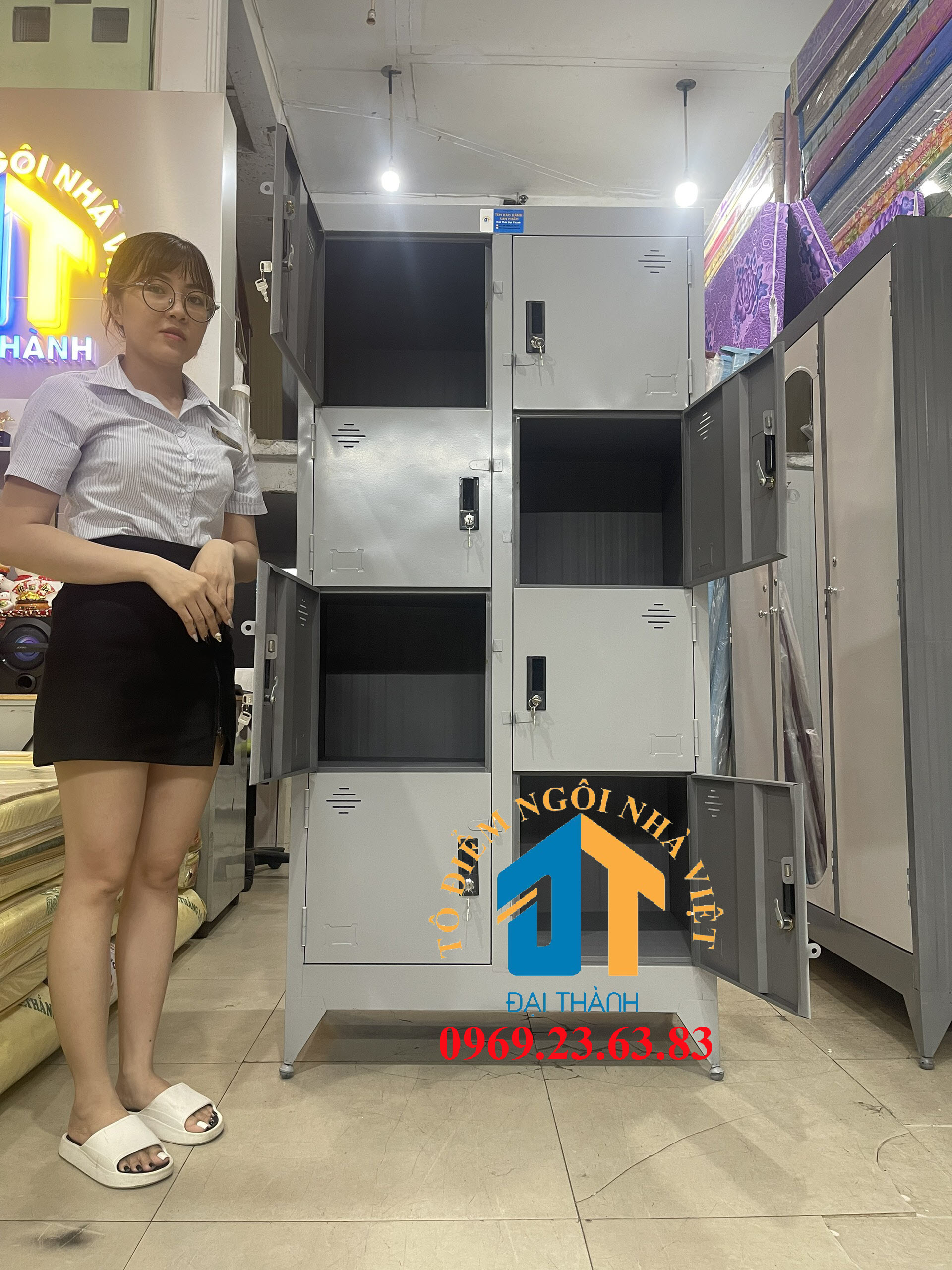 Mua tại TiktokMàu sắc: xám ghi. Kích thước ; Rộng 90cm X Cao 1m8 X Sâu 45cm . Cấu tạo: 8 cửa + Tủ được làm từ chất liệu sắt sơn chống gỉ sét + Tủ có màu chính là màu xám ghi