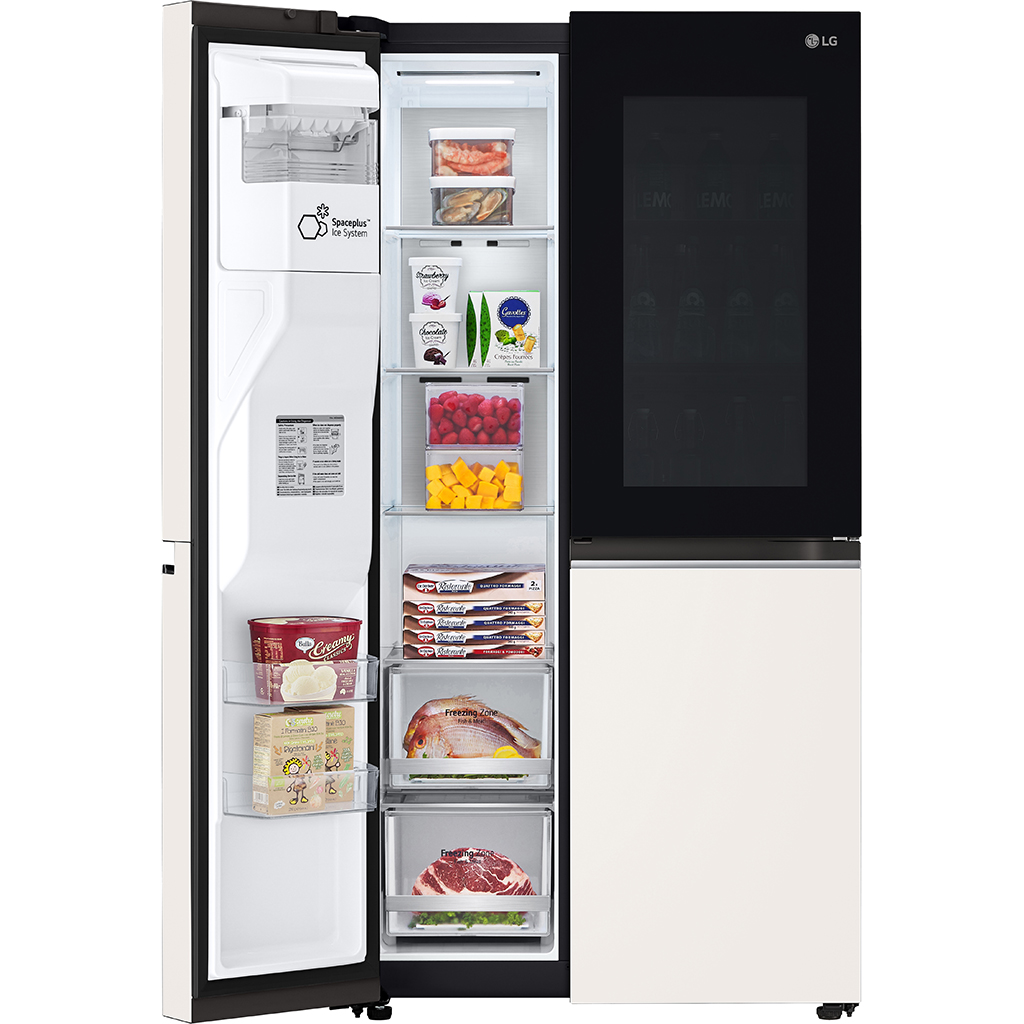 - ĐƯỢC KHUI THÙNG KIỂM TRA sản phẩm trước khi thanh toán/ký nhận Đặc điểm sản phẩm Model: GR-X257BG Màu sắc: Be Nhà sản xuất: LG Xuất xứ: Trung Quốc Năm ra mắt : 2023 Kiểu tủ lạnh: Side by side Số cửa tủ: 2 cửa Dung tích tủ lạnh: 674 L Dung tích sử dụng: 635 L Dung tích ngăn đá: 219 L Dung tích ngăn lạnh: 416 L Đóng tuyết: Không Chất liệu khay: Kính cường lực Công nghệ làm lạnh: LINEARCooling, DoorCooling+ Công nghệ bảo quản thực phẩm: FRESHBalancer Kháng khuẩn / Khử mùi: Hygiene Fresh+ Chất liệu bên ngoài: PCM Màu Be Công nghệ Inverter: Có Inverter Làm đá tự động: Máy làm đá tự động (Spaceplus), làm đá viên, đá nghiền Lấy nước bên ngoài: Có Điện năng tiêu thụ: 688 kWh/năm (2 sao) Kết nối Wifi: Wifi ThinQ Tiện ích khác: Chuẩn đoán thông minh (Smart Diagnosis); Đông nhanh (Express Freeze); Hộp tiện ích (Utility Box), giá đựng rượu, hộp đựng rau; Khóa trẻ em (Child lock); Cảnh báo cửa (Door alarm) Khối lượng sản phẩm (kg): 131 kg Kích thước sản phẩm: 913x735x1790 mm