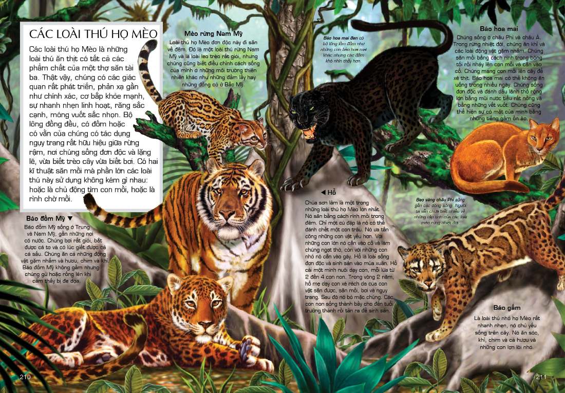 Với hơn 300 trang sách màu cùng 1.000 minh họa ấn tượng, sinh động, Thế giới động vật đã miêu tả đầy đủ, chân thực các đặc điểm, tập tính của hơn 150 loài vật trong nhiều sinh cảnh khác nhau. Đặc biệt, có những loài vật được miêu tả trong các môi trường sinh thái khác nhau. Các em sẽ thấy được sự thích nghi của động vật đối với môi trường sống như thế nào. Em sẽ rất ngạc nhiên khi thấy sự khác biệt của loài mèo khi được thuần hóa và khi sống hoang dã trong rừng rậm. Em cũng sẽ biết được các loài chim sẽ thay đổi như thế nào khi bước từ rừng xanh vào môi trường nuôi nhốt…