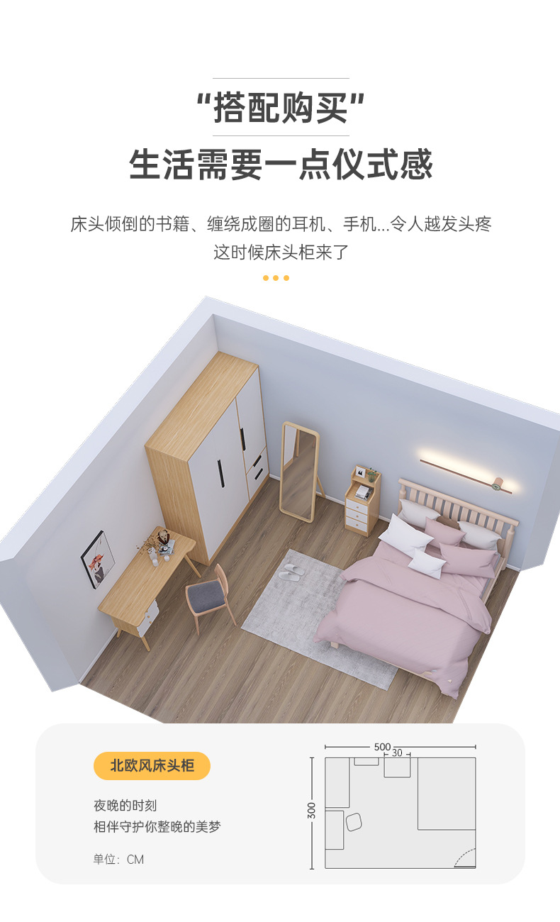 THÔNG TIN SẢN PHẨM - Tên sản phẩm: Tab đầu giường phong cách Nordic - Chất liệu: Gỗ MDF phủ melamin, chân gỗ sồi tự nhiên - Màu sắc: Trắng - Vân gỗ - Cấu