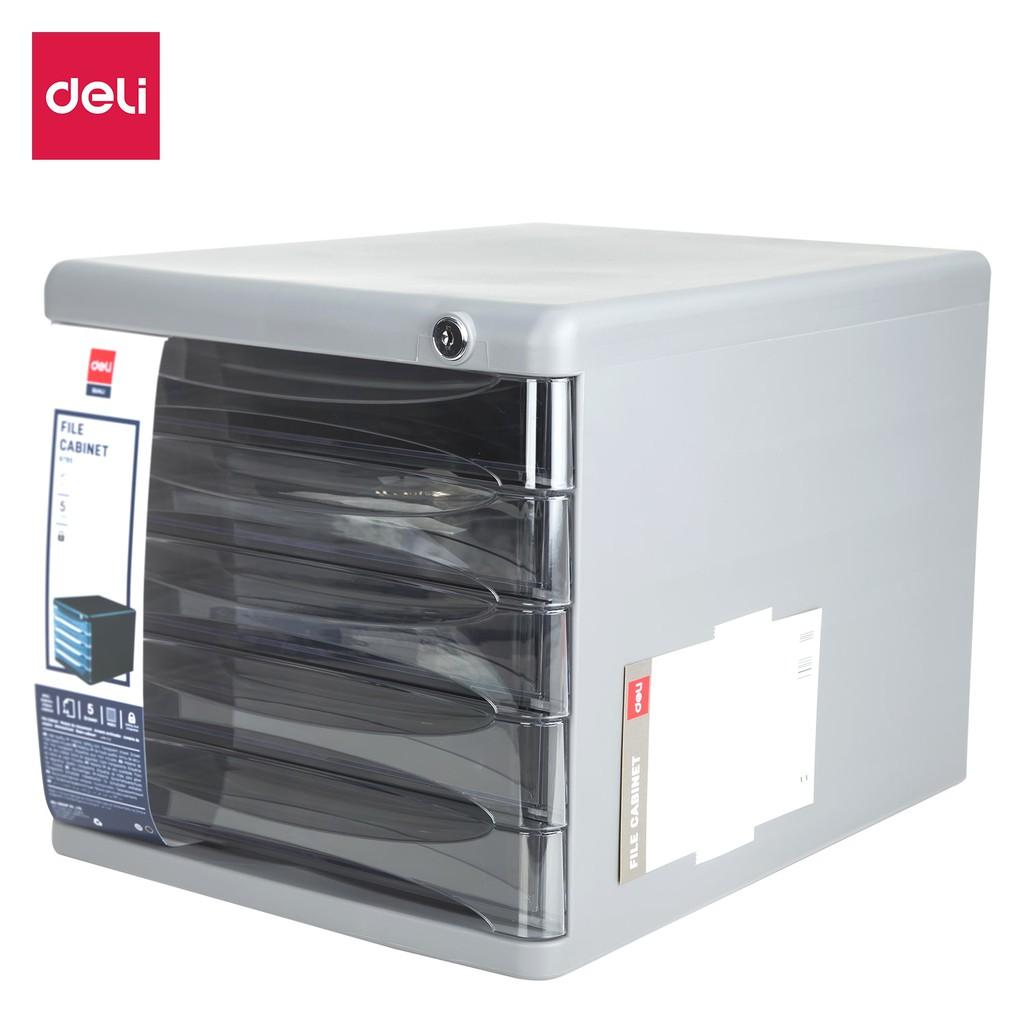 ✨Tủ tài liệu 5 ngăn Deli, Ghi xám/Đen - E9795