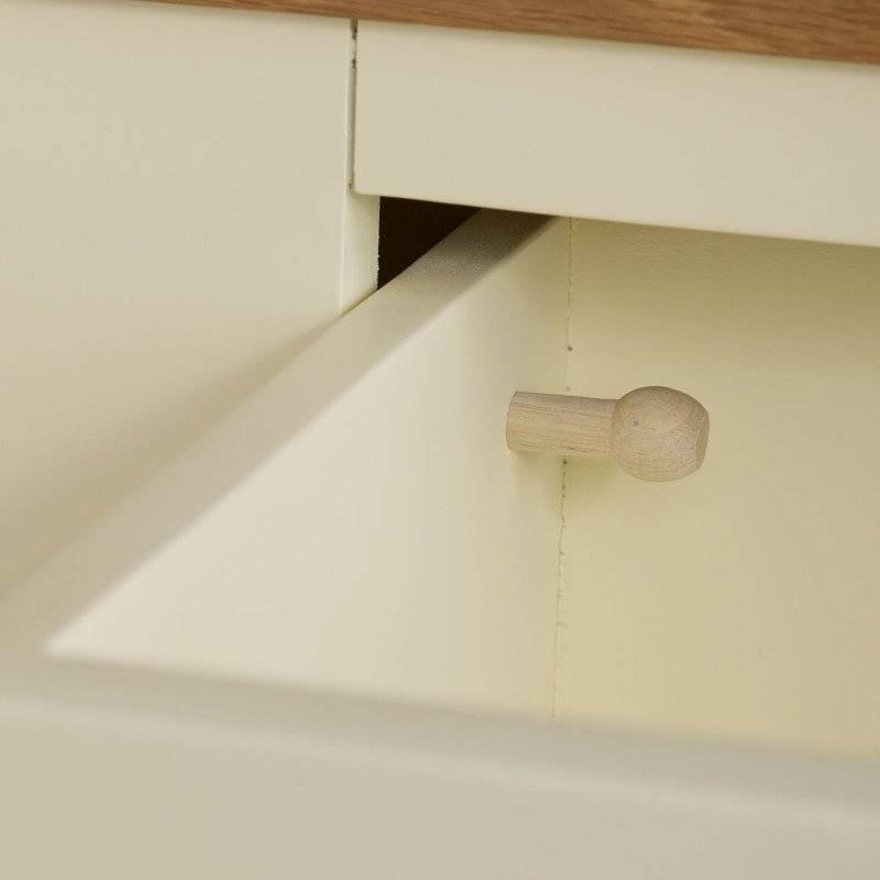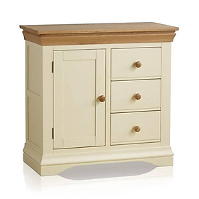 Tủ trữ đồ Country Cottage được thiết kế để tối đa hóa không gian lưu trữ cho một ngôi nhà trở nên gọn gàng và ngăn nắp. Sản phẩm chế tác dựa trên phong cách kiểu dáng cổ điển của Pháp. Bề mặt tủ được sơn màu kem tạo sự tương phản và hấp dẫn với màu nâu tự nhiên của chất liệu gỗ sồi trắng Mỹ nhập khẩu. Kết hợp đường lõm tinh tế và các mép tròn mềm mại, chân đế cong tạo nên một tổng thể thanh lịch và sang trọng. Tất cả ba ngăn kéo được chế tác thủ công, kết cấu khớp nối truyền thống chắc chắn. Được trang trí bởi một tay cầm nút gỗ, mở ra không gian bên trong rộng rãi, với một tấm kệ có thể điều chỉnh chiều cao đáp ứng việc lưu trữ đồ dùng linh hoạt. Thiết kế thuộc bộ sưu tập Country Cottage này, không chỉ phủ hợp cho nội thất phòng ngủ mà còn các khu vực, vị trí khác nhau trong ngôi nhà như phòng khách, phòng ăn, phòng làm việc….