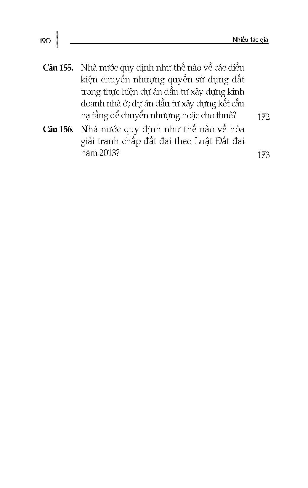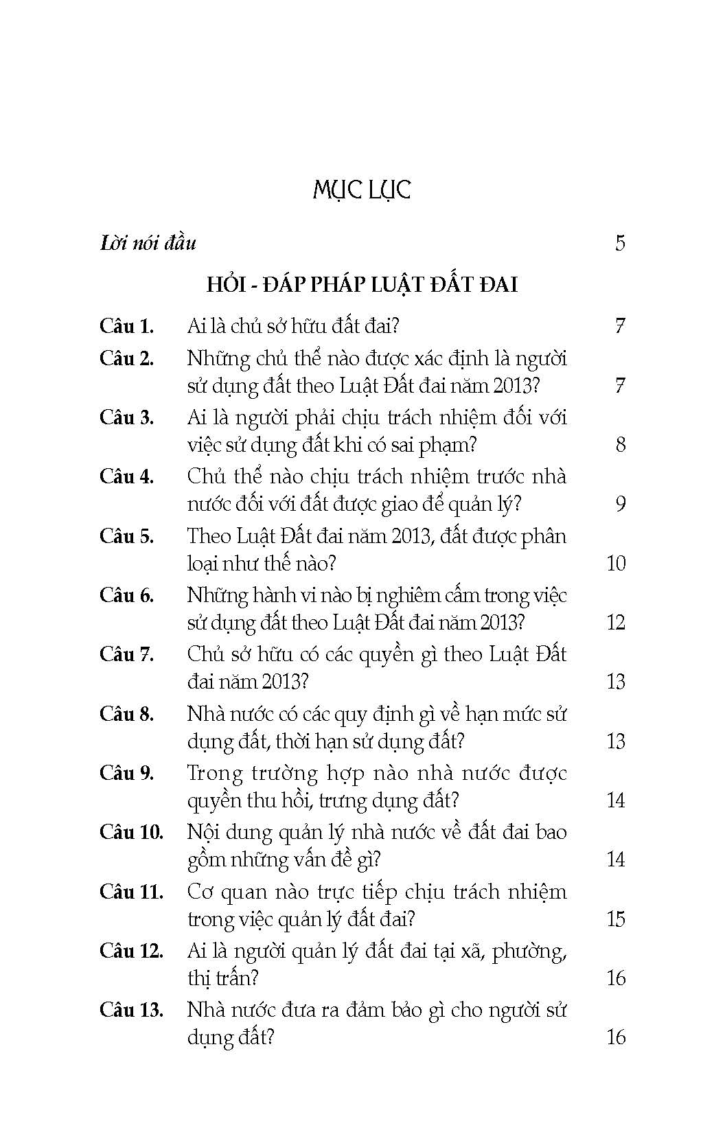 Nhu cầu tìm hiểu các vấn đề pháp lý về đất đai, nhà ở là nhu cầu chung của mọi người dân trong xã hội. Với phương châm để bạn đọc có thể tiếp cận các kiến thức pháp luật một cách đơn giản, dễ hiểu nhất, nội dung cuốn sách được biên soạn dưới dạng hỏi - đáp về các vấn đề pháp lý liên quan đến đất đai và nhà ở. Các câu hỏi đáp pháp luật được biên soạn rõ ràng, dễ hiểu và là những vấn đề thường nhận được sự quan tâm của nhiều chủ thể khác nhau trong xã hội.