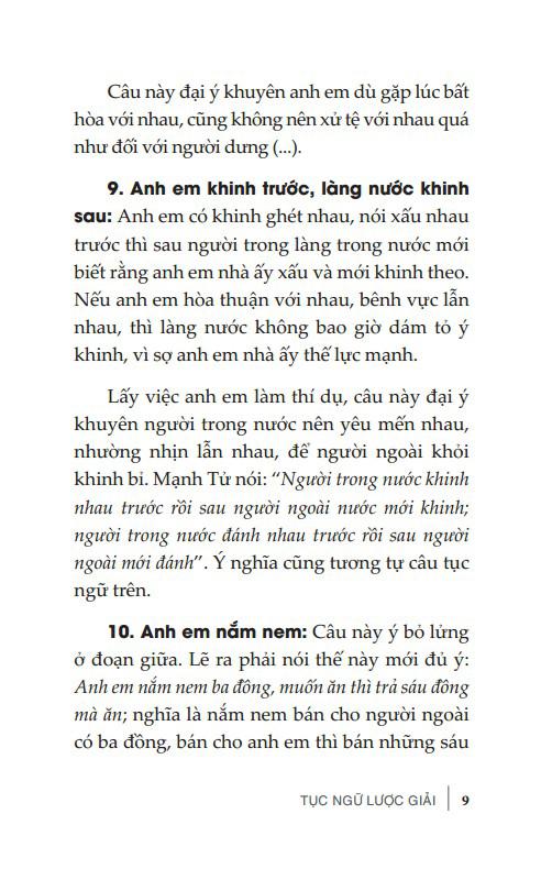 Không những anh em thanh niên học sinh, ngay người lớn chúng ta, nhiều khi cũng không khỏi lúng túng trước ý nghĩa một vài câu tục ngữ, vốn yêu chuộng quốc văn, quốc học, chúng tôi chú trọng đến tục ngữ và văn học Việt Nam đã từ lâu.