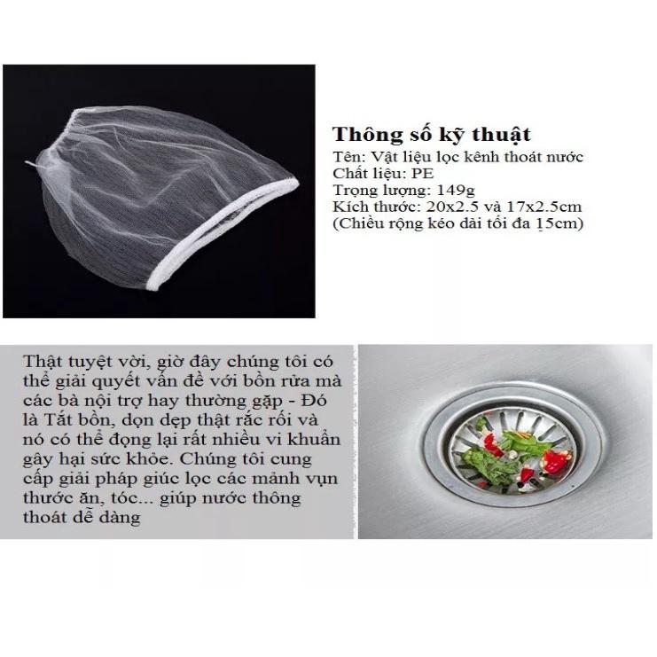 - Sản phẩm được làm bằng chất liệu vải lưới nhuyễn giúp thoát nước và giữ lại tất cả rác thừa lại ngăn chặn gây tắt đường nước.