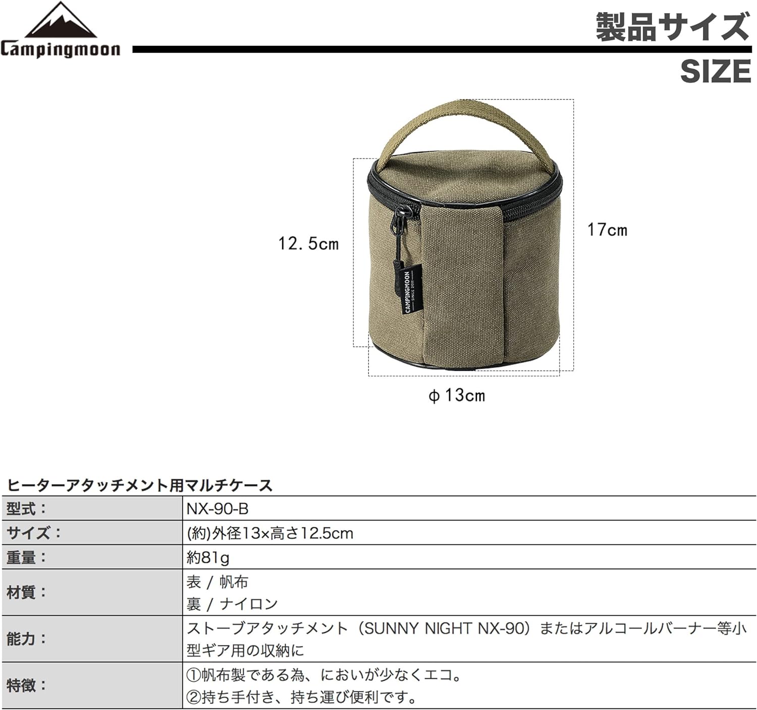 Túi Campingmoon NX-90-B dùng để bảo quản đèn gas NX-90 hoặc các đồ dùng khác có kích thước tương dương