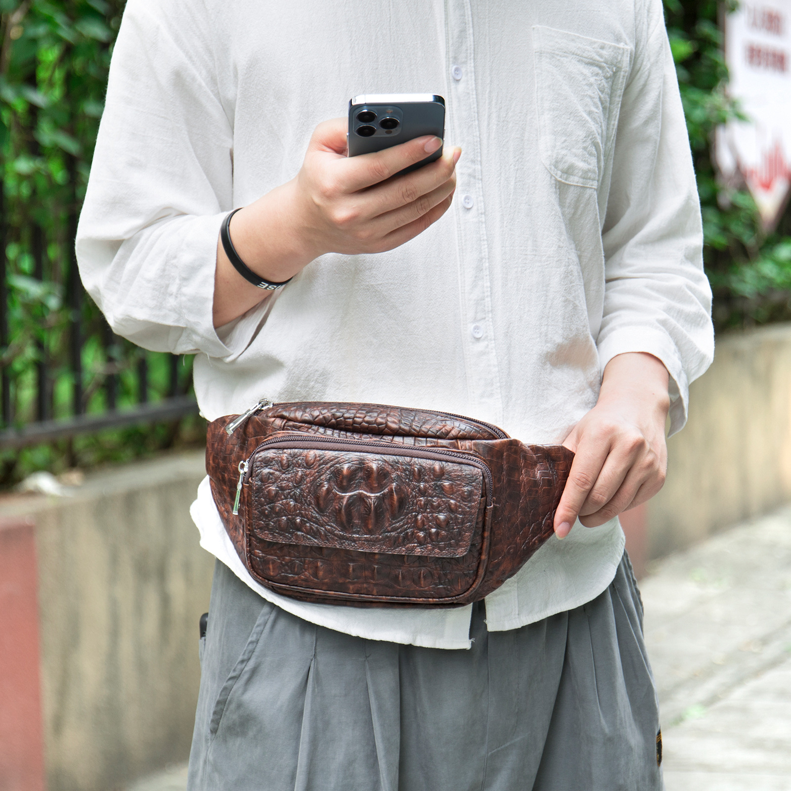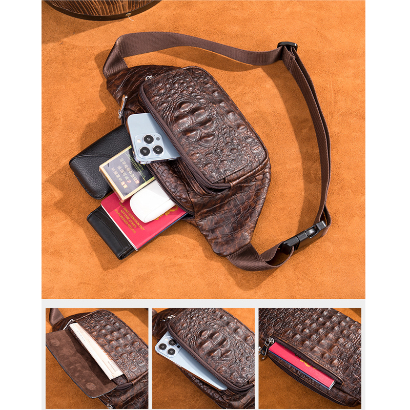 New new Túi Đeo chéo Nam Da Bò Cao Cấp | Đeo Thắt lưng - MSP : A202