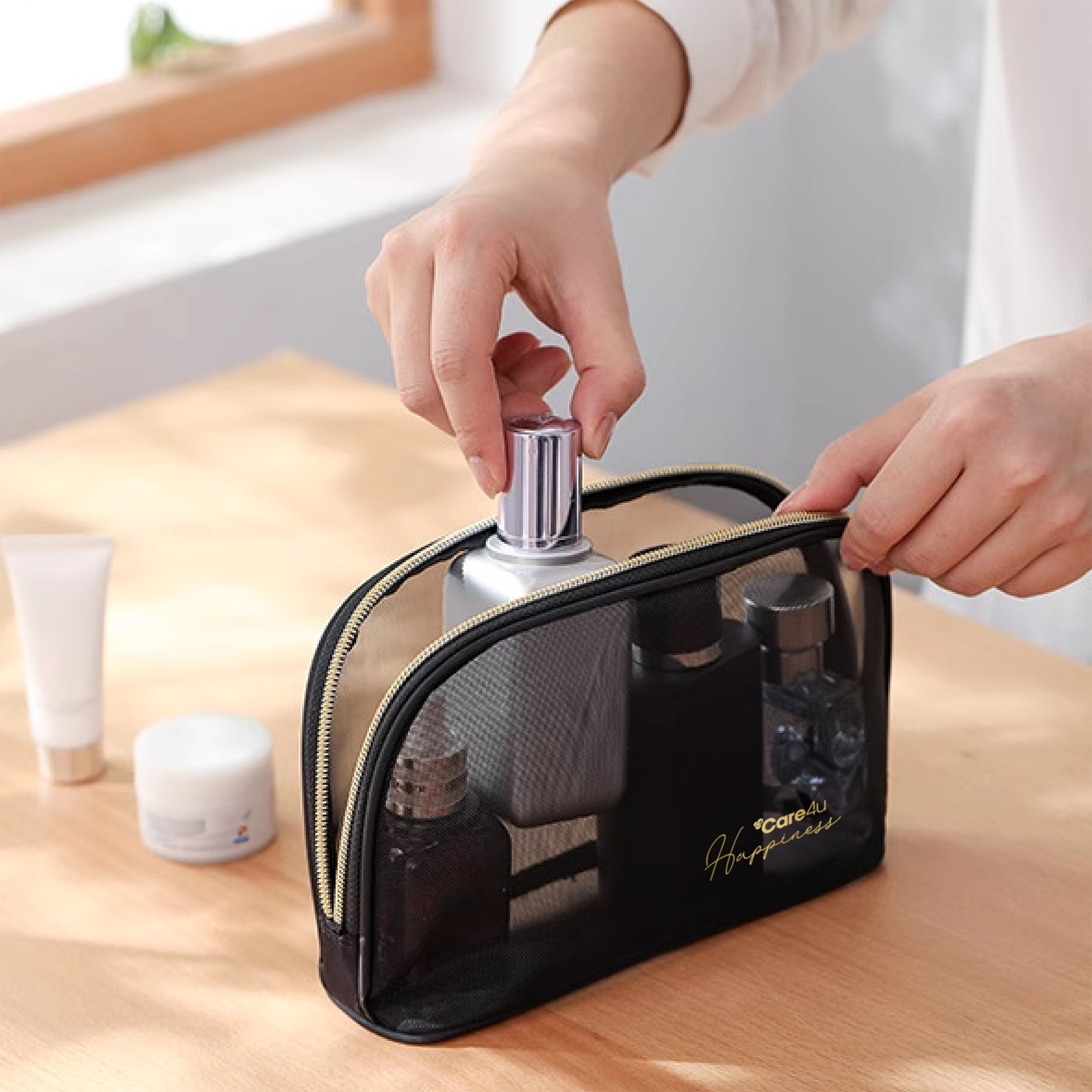 Mua tại TiktokMô tả sản phẩm: Túi đựng mỹ phẩm cao cấp Care4u được thiết kế sang trọng, thanh lịch với dạng túi lưới thoáng khí siêu nhẹ, giúp bạn thuận tiện quan sát những đồ dùng bên trong túi.