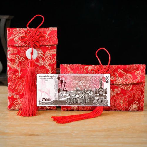 ✨Túi gấm màu hồng loại 500 Cambodia sưu tầm, làm quà tặng