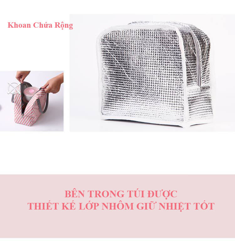 Túi đựng cơm giữ nhiệt Túi đựng hộp cơm đa năng tiện dụng Túi giữ nhệt cao cấp size lớn size nhỏ Túi đựng cơm giữ nhiệt được thiết kế 3 lớp, công nghệ chống