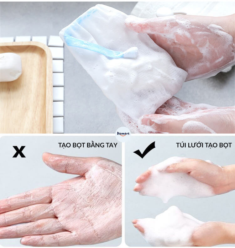 - Thay thế bông tắm - bạn có có thể dùng túi lưới tạo bọt & chà trực tiếp lên cơ thể, sạch hiệu quả