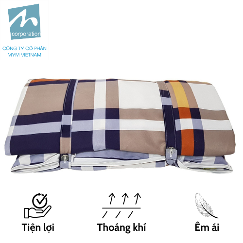 Xơ microfiber (gòn) (100% Polyester): Xơ microfiber mềm mại và nhẹ tạo ra lớp lót êm ái và ấm áp, bạn sẽ có một giấc ngủ ngon và thư giãn sau một ngày dài hoạt động.