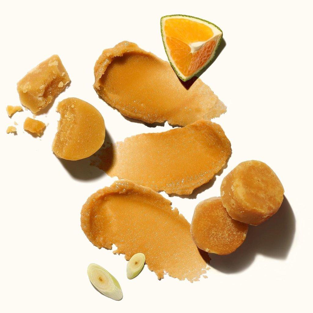 - Sucrose, Borassus Flabellifer Sap, Aqua/Water, Panthenol, Carthamus Tinctorius (Safflower) Seed Oil, Macadamia Integrifolia Seed Oil, Argania Spinosa Kernel Oil, Cocos Nucifera (Coconut) Oil, Olea Europaea (Olive) Fruit Oil, Oryza Sativa (Rice) Bran Oil, Ethylhexylglycerin, Tocopherol, Magnesium Aluminum Silicate, Citrus Aurantium Dulcis (Orange) Peel Oil, Mentha Piperita Oil, Cymbopogon Citratus Leaf Oil, Parfum, BHT, Caramel, Phenoxyethanol. Cách sử dụng Thoa sản phẩm lên da ướt, massage nhẹ nhàng từ cổ đến chân, sau đó tắm sạch. Dùng 2-3 lần/tuần. Hạn sử dụng 3 năm kể từ ngày sản xuất, mở nắp dùng trong 12 tháng.