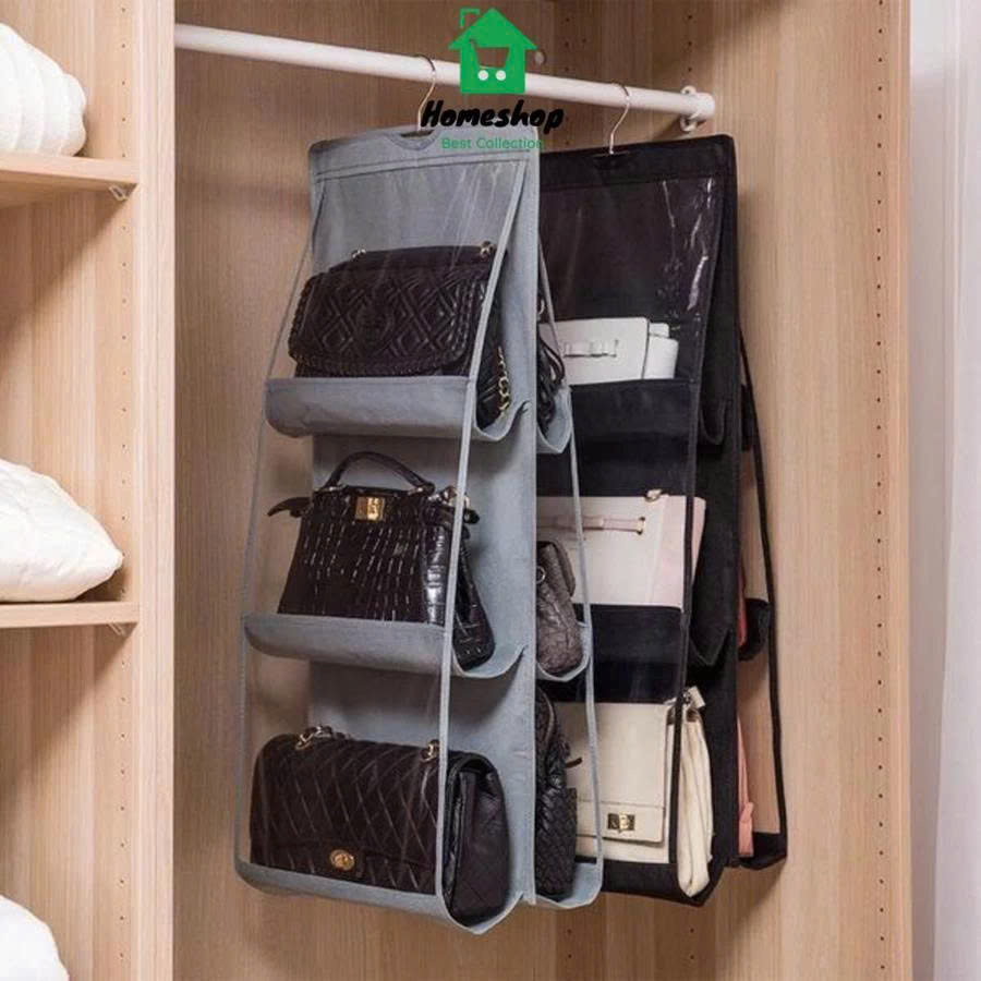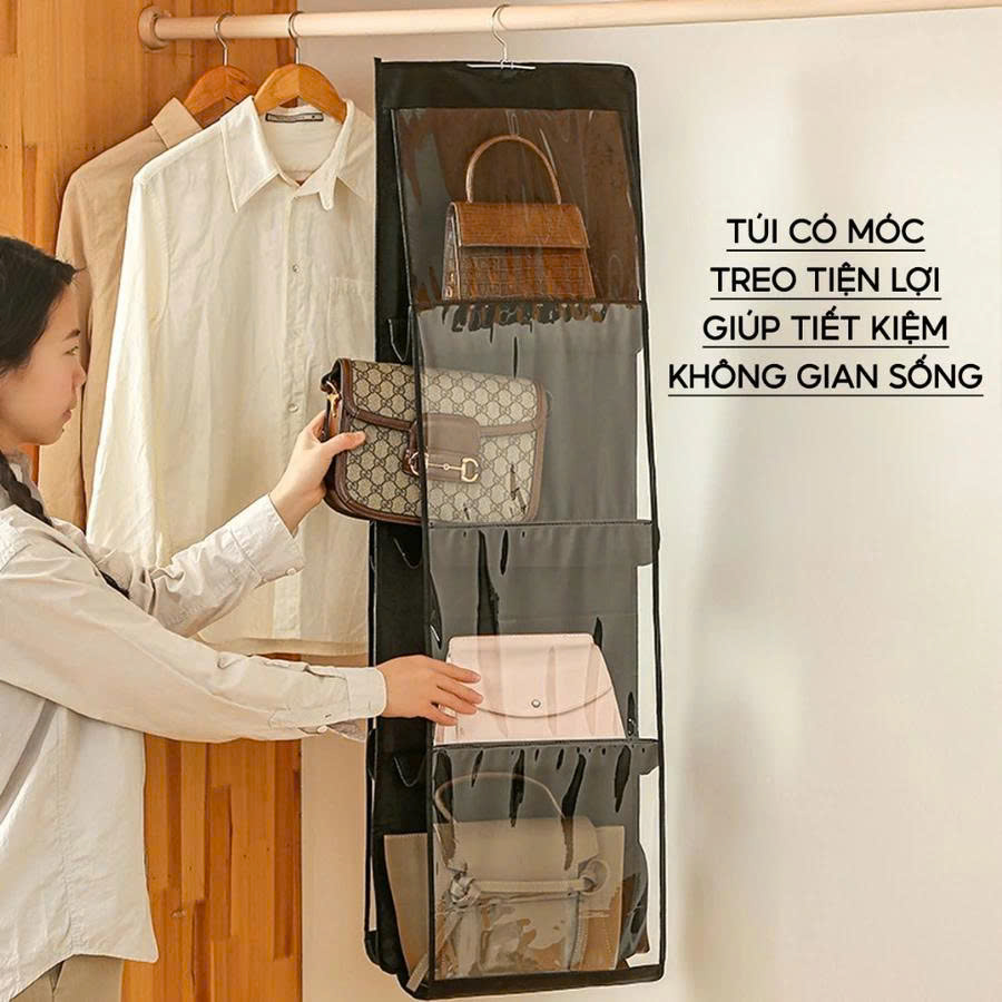 -Túi Treo Túi Xách Đa Năng – 2 Mặt, 6 Ngăn, Trong Suốt, Bền Đẹp, Gọn Tủ Đặc điểm nổi bật: - Thiết kế 2 mặt – gấp gọn dễ treo: Tối ưu không gian