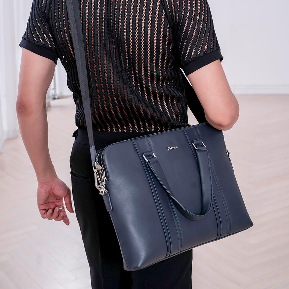- Túi Xách Công Sở Nam Da Bò Saffiano CDX11 - Xuất sứ: Gence Việt Nam - Mã SP: CDX11 - Sử dụng: Túi đeo ngang vai, Đựng được máy tính xách tay 14″, Ipad