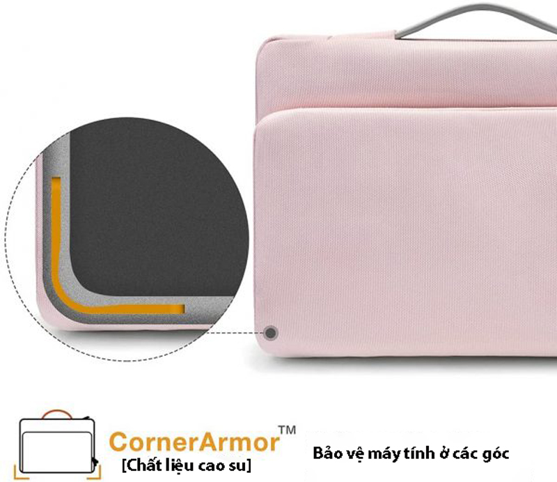 - Sử dụng công nghệ sáng chế tiên tiến của Hoa Kỳ CornerArmor trang bị phía dưới túi chống sốc một lớp đệm bảo vệ 360* xung quanh vành túi một cách an toàn như