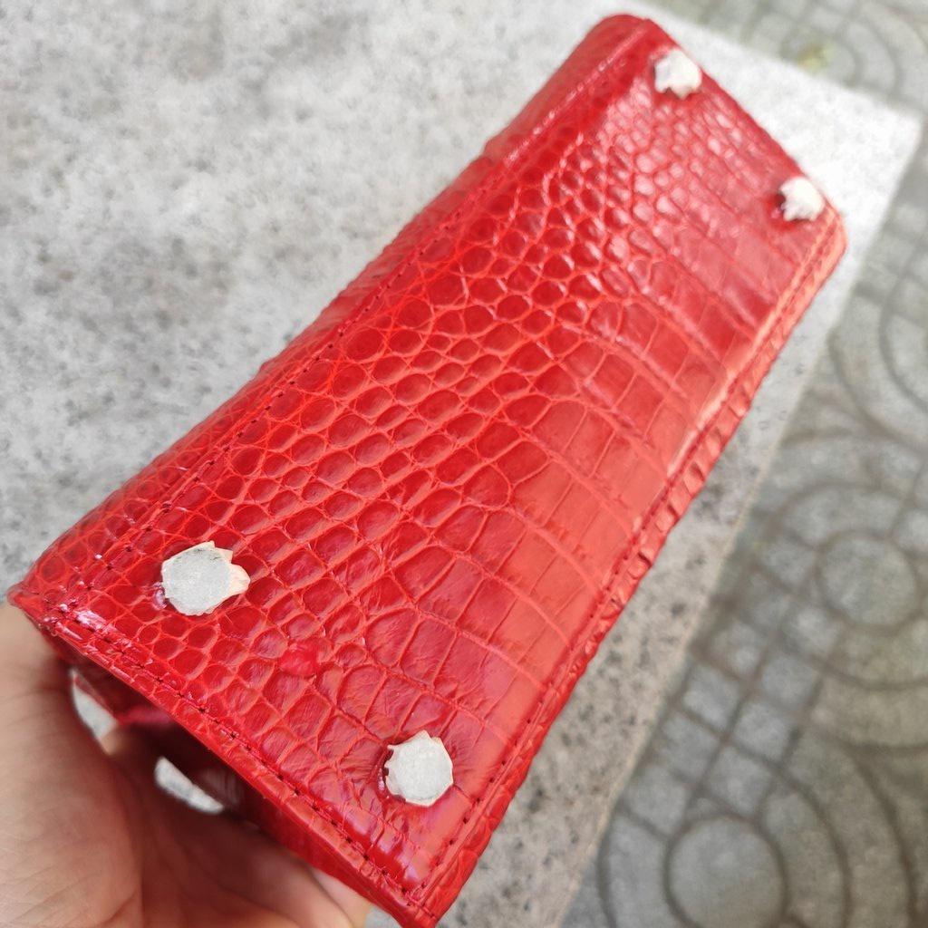 Túi được làm liền mạch nguyên tấm da cá sấu lớn rất đẹp và chắc chắn.
