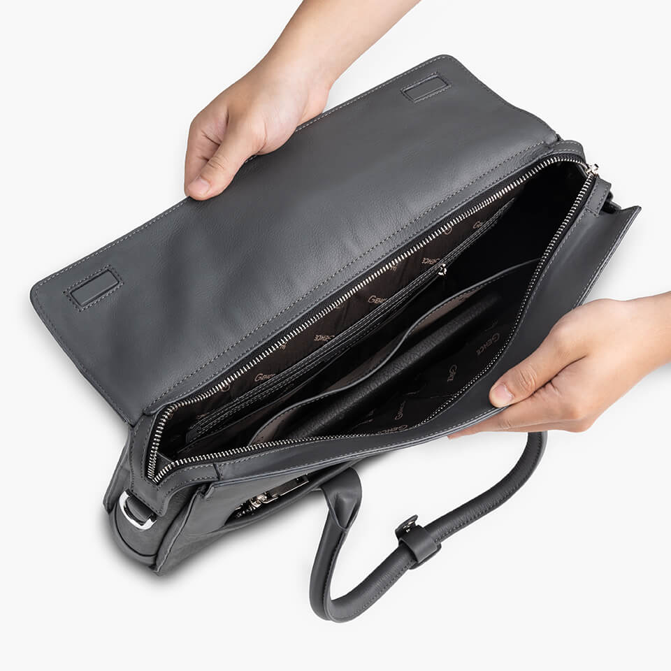 Xuất sứ: Gence Việt Nam Mã SP: GCE26 Sử dụng: Túi xách, cặp da đeo ngang vai, Đựng được máy tính xách tay 15″, Ipad 9.7″, 7.9″ & Máy tính bảng các loại. Kích thước: Rộng 39 * Cao