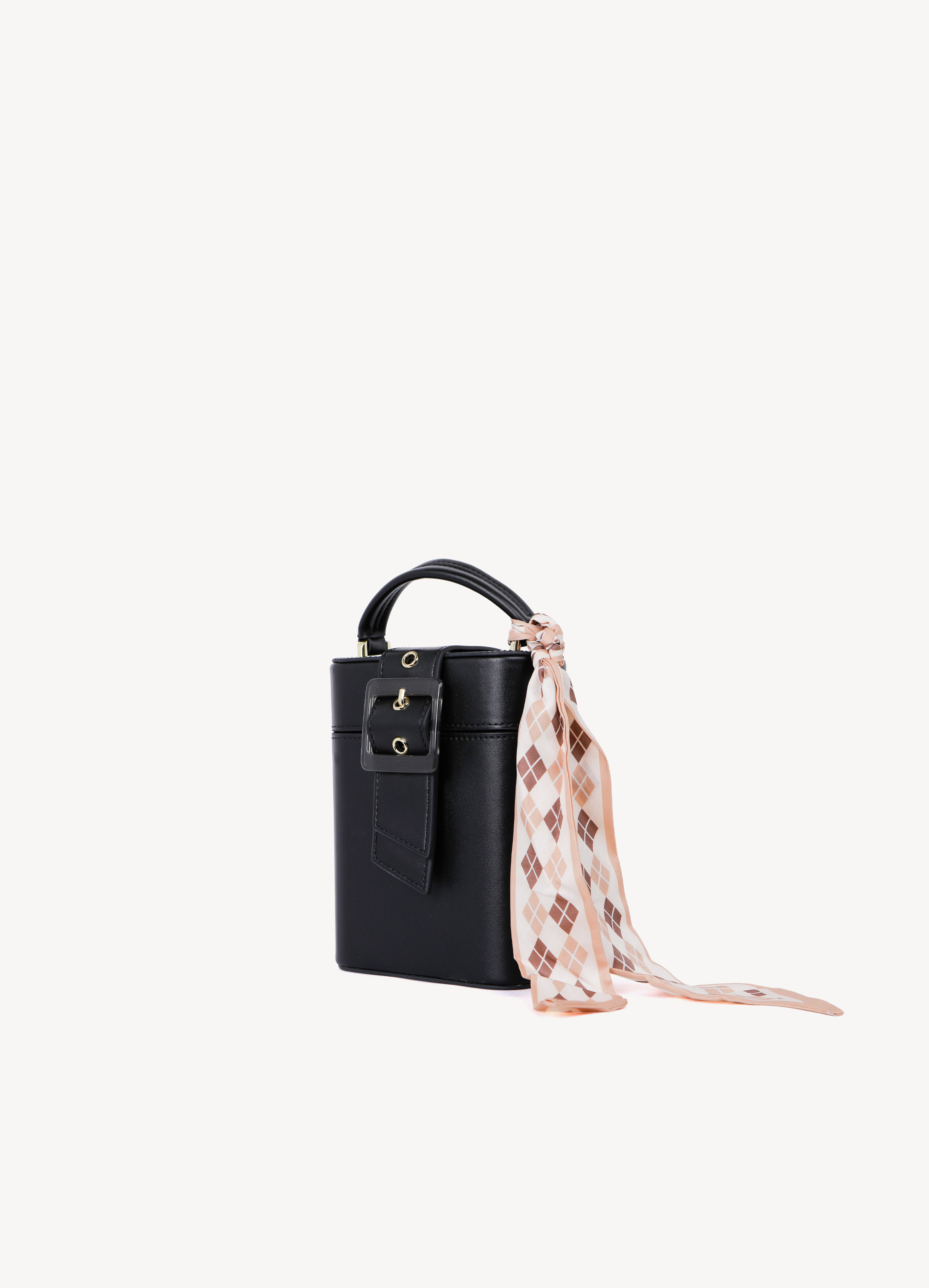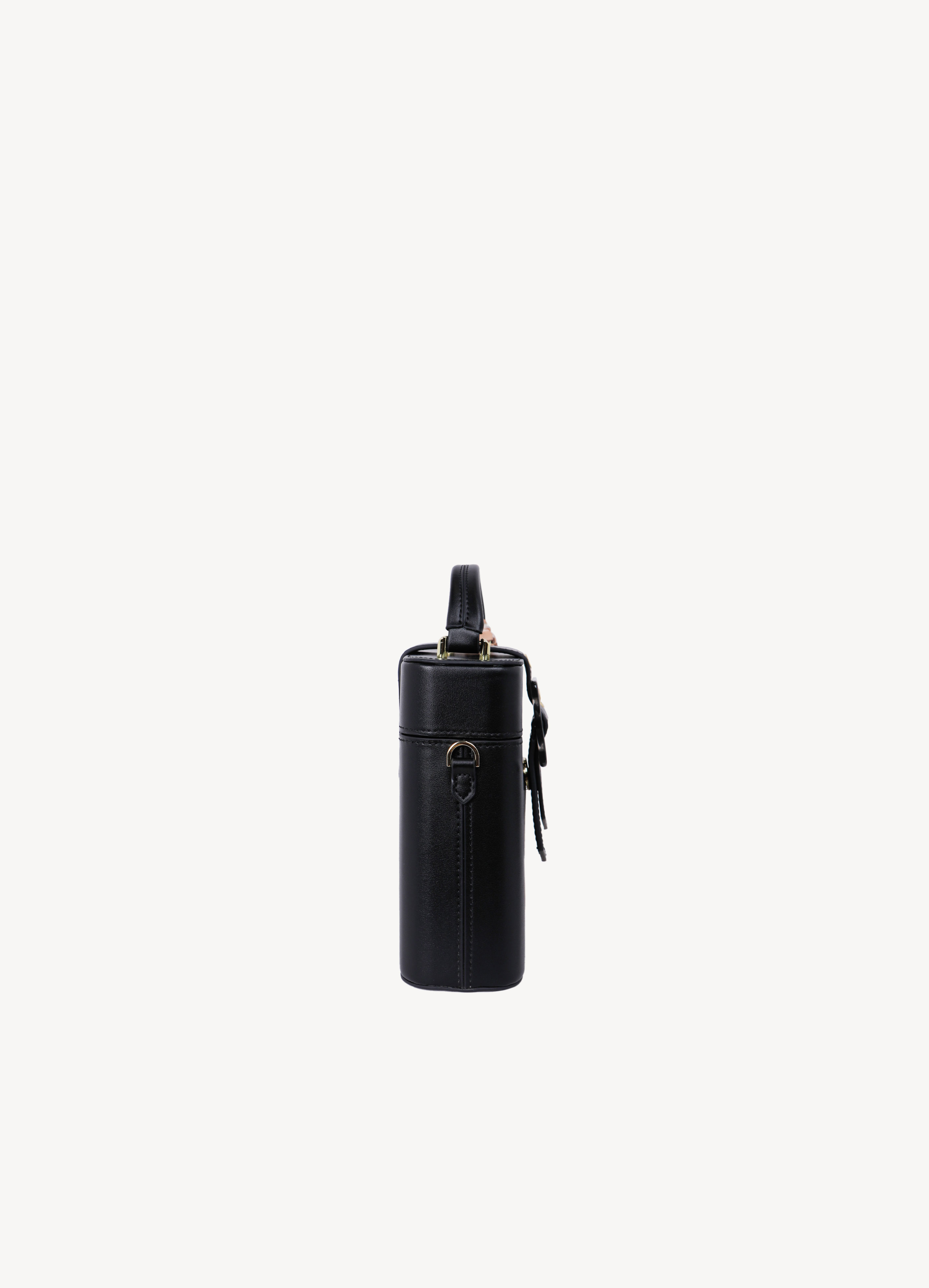 Sản phẩm hình hộp độc đáo kèm dây đeo chéo bằng da tiện lợi.