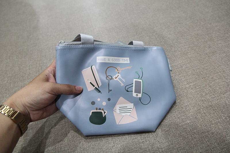 Kích thước : rộng 25cm X cao 27cm X dày 12cm Trọng lượng: 0.22kg Màu: Xanh, Xanh đậm, Hồng Phương pháp sản xuất: công nghệ cao Chất liệu : Vải OXFORD cao cấp Chức năng: