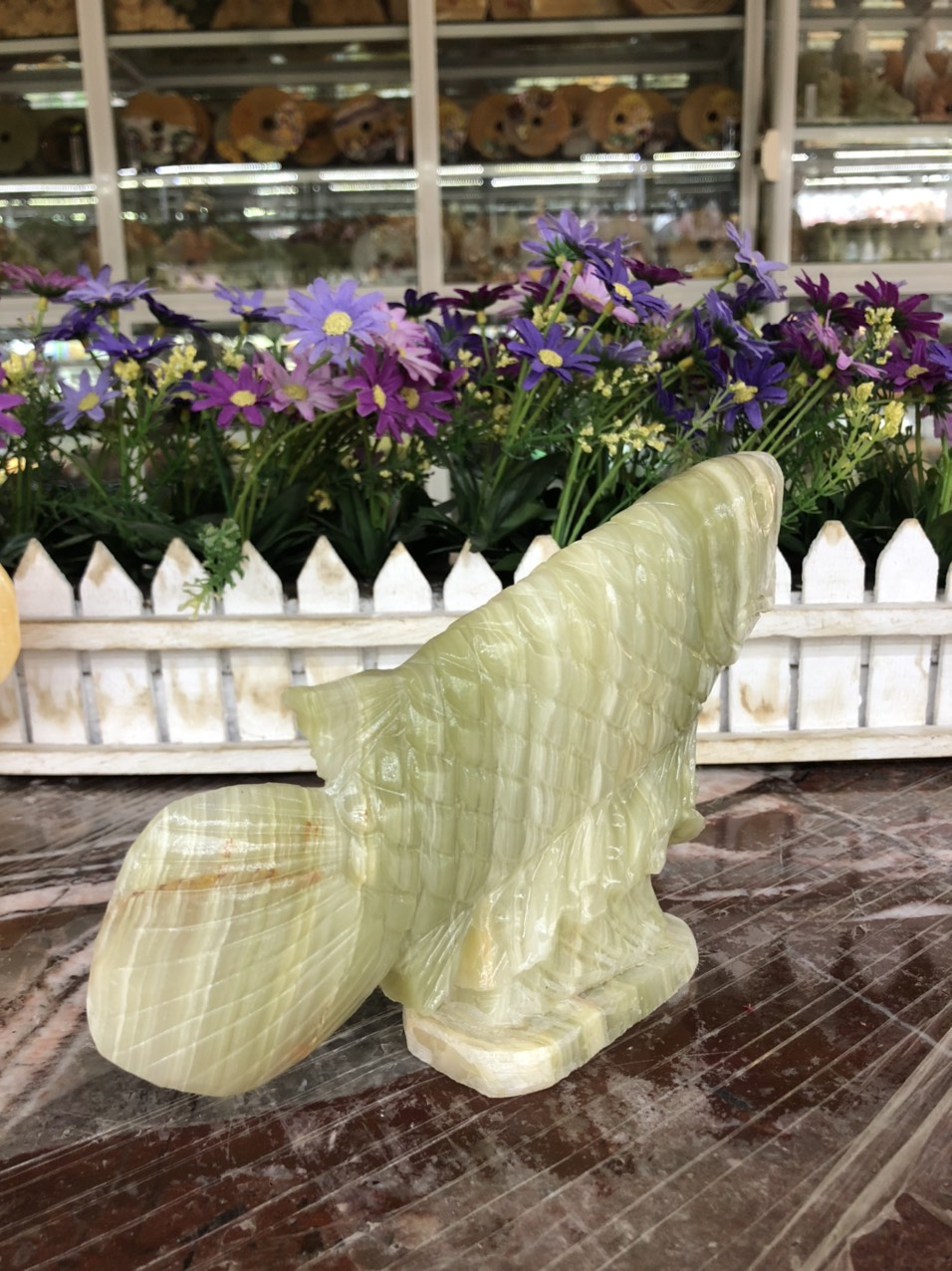 Tượng Cá Rồng Cá Chép đủ màu dài 30cm Tượng Cá Phong Thuỷ đá ngọc hoàng long, onyx trắng và xanh