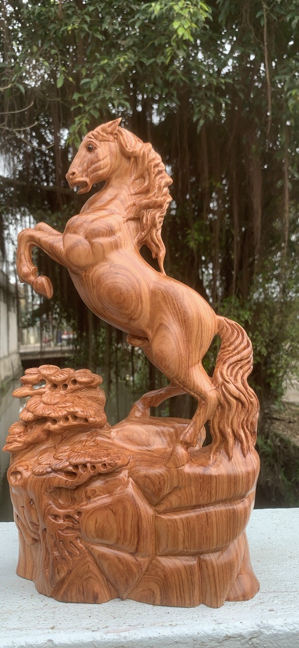 _ Tượng con ngựa nhất mã phi thiên được trạm khắc vô cùng tỉ mỉ tinh sảo kỳ công đi hầu hết tất cả mọi chi tiết góc ngách nội dung hoa văn của tượng đều được ngọt tỉa chỉnh sửa hoàn toàn bằng tay thủ công .Đồng thời tượng được kiểm định rất kỹ lưỡng như cho vào thẩm sấy cho gỗ khô kiệt .Mục đích trống dập nứt vênh mo mối mọt .Kết hợp với trà nhám đánh giấy giáp nhiều lần cho sạch sẽ ,sờ mát lạnh ,Song cho vào phun lót làm bóng mờ để giữ lại mầu sắc vân gỗ tự nhiên .Tượng được làm và hoàn thiện do bàn tay khối óc tài hoa từ những người thợ giàu kinh nghiệm cũng như tay nghề cao trong làng nghề truyền thống .Chính vì thế tượng con ngựa đã đáp ứng đầy đủ những tiêu trí ( Đẹp bền rẻ ) Thẩm mỹ nghệ thuật với chất lượng tuyệt vời