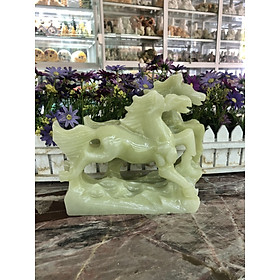 Kích thước: Dài 20 cm x Rộng 9 cm x Cao 18,5 cm Khối lượng: 2,7 kg Chất liệu: Đá ngọc onyx Ngựa được nhiều doanh nhân ưa chuộng. Bởi lẽ, trong phong thủy, Ngựa