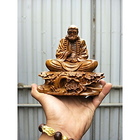 _ Tượng đạt ma sư tổ ngồi thiền trên gốc cây tùng .Được làm bằng chất liệu gỗ bách xanh liền khối tự nhiên 100%
