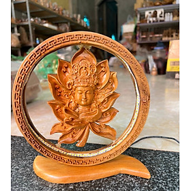 _Diện phật được làm bằng chất liệu gỗ hương đá tự nhiên 100% _ Kt tròn 20×20×6cm _ Diện phật được trạm khắc tỉa mỉ ,tinh sảo kỳ công à được lắp thêm bóng đèn