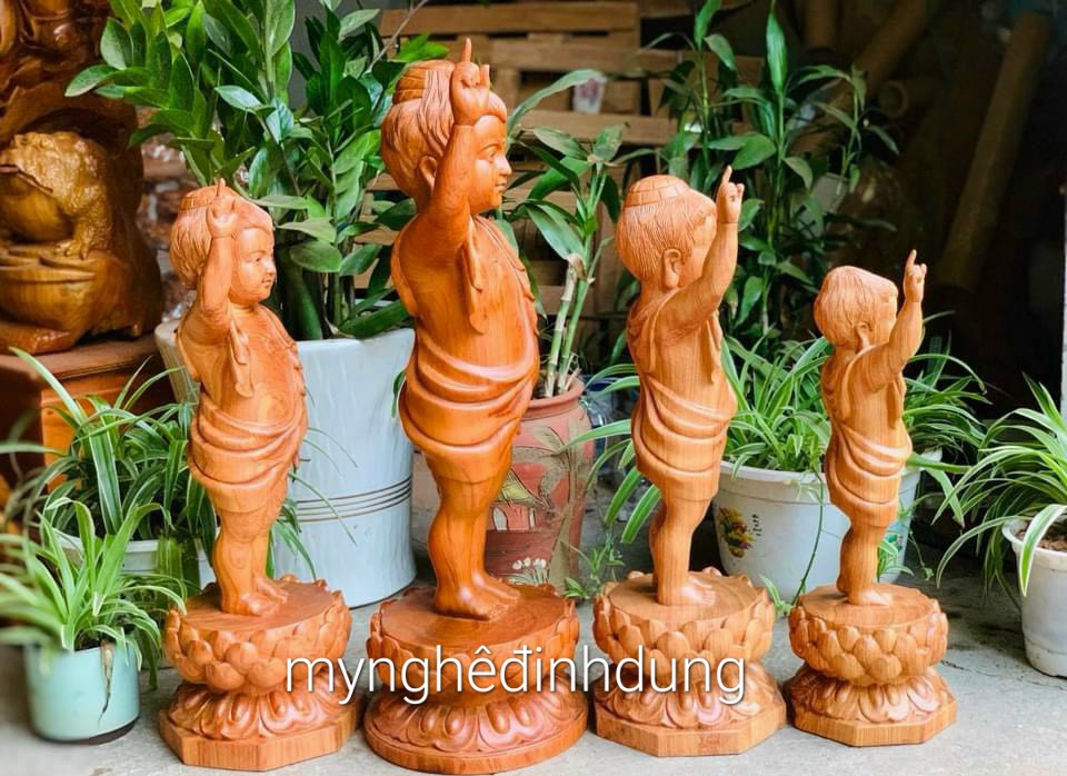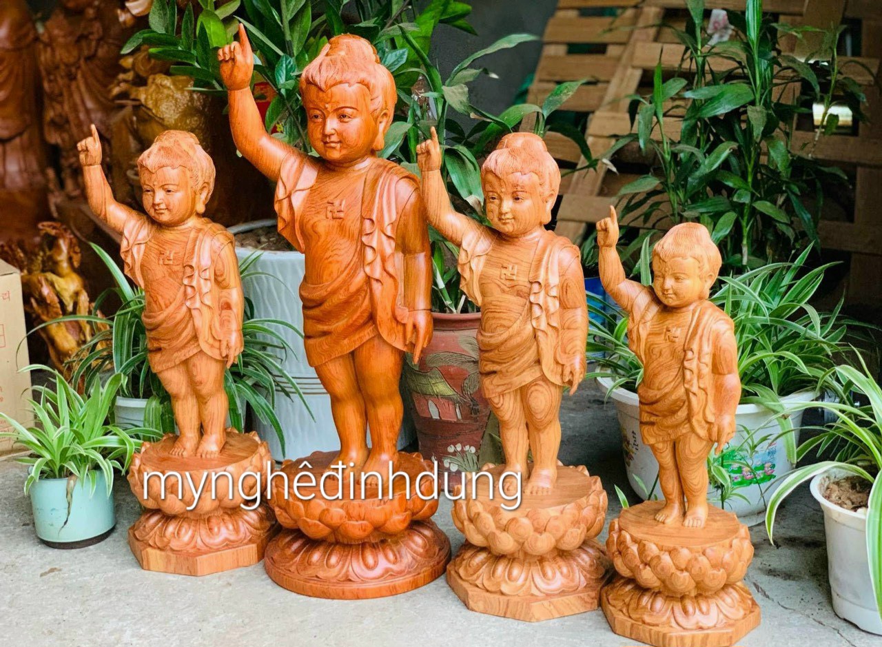Tượng Phật đản sinh đứng trên đài sen gỗ hương đá | Đồ Gỗ Hướng Mai