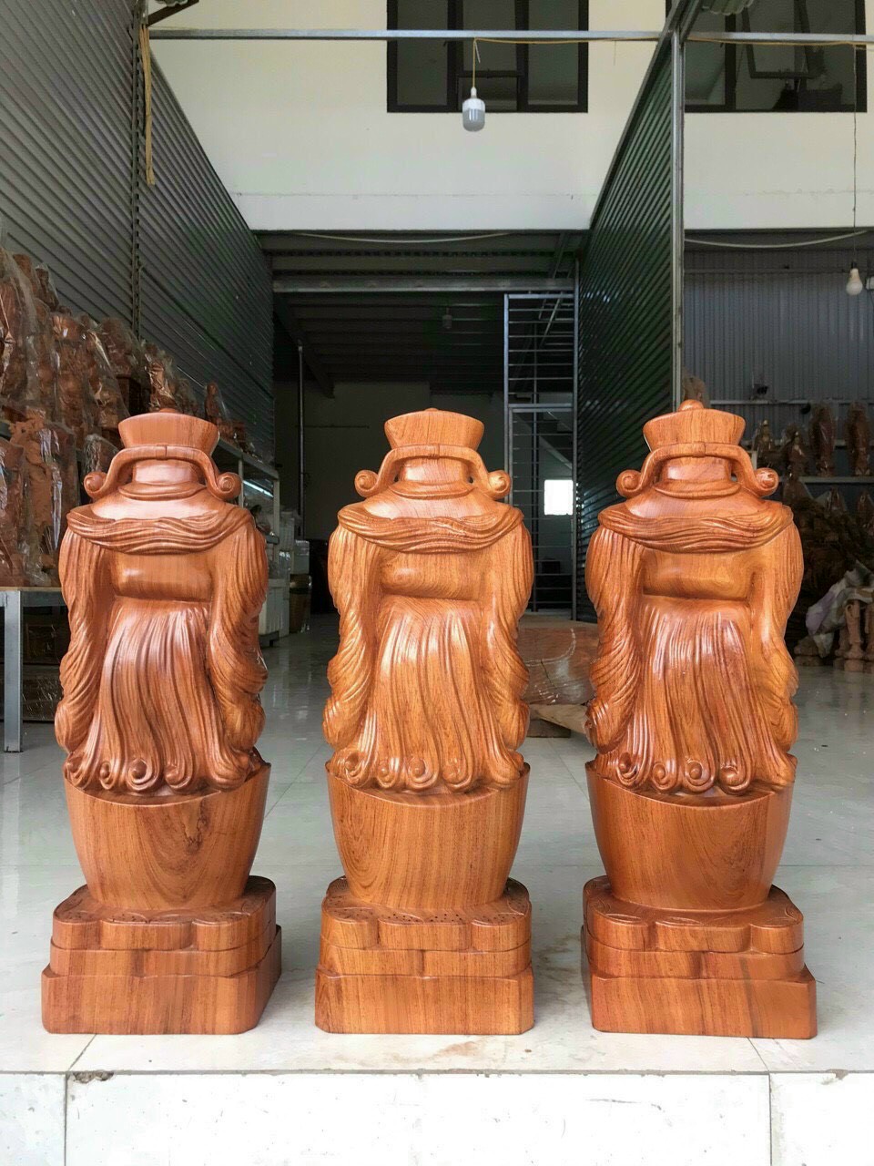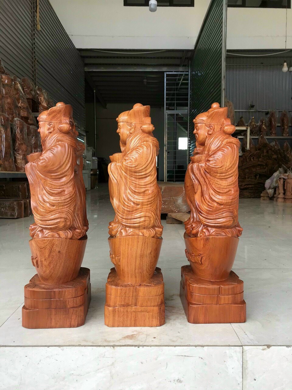 _ Bộ combo bộ tượng phật tam đa phúc lộc thọ liên khối +thêm kệ chân đế được làm bằng chất liệu gỗ huyết long tự nhiên 100% _ Kt cao 30×11×9cm ,kệ chân đế