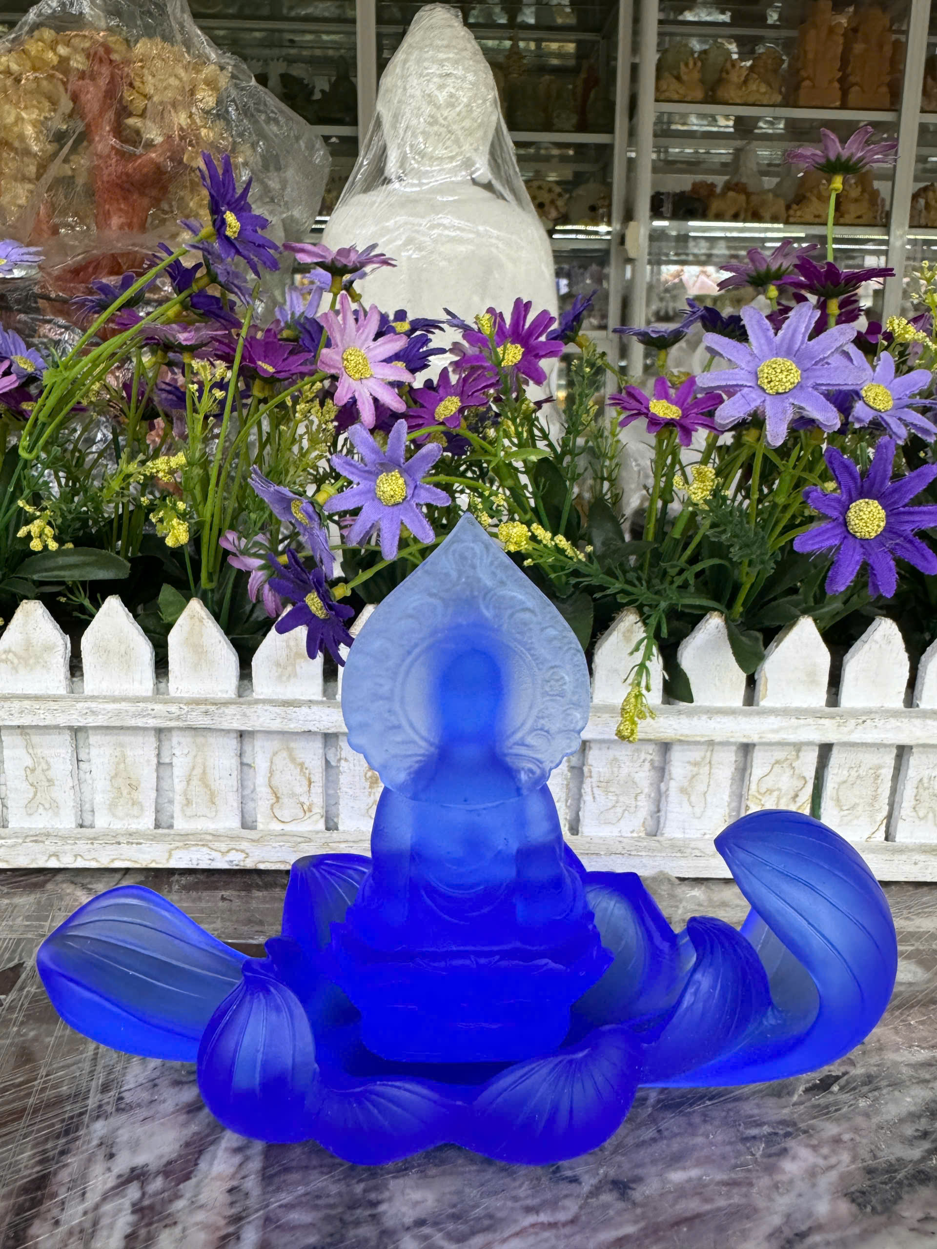 Kích thước: Cao 12 cm x Dài 8cm ( tượng phật), Dài 20 cm x Rộng 10 cm ( Đế sen ) Chất liệu: Đá lưu ly Cách sử dụng: Để Bàn Làm Việc, Phòng