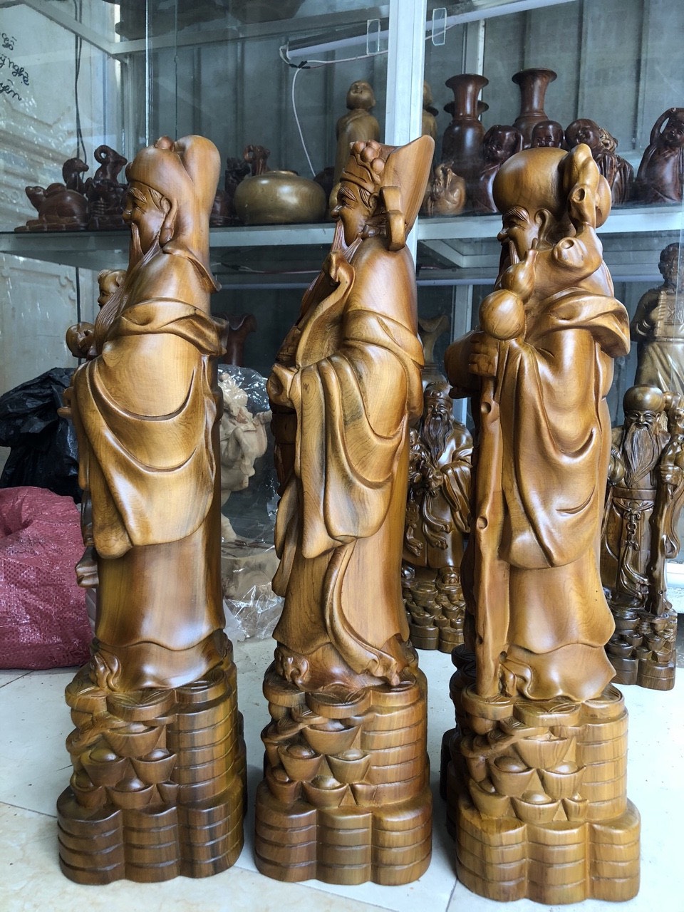 Báo giá cả lô tượng Tam Đa Phúc Lộc Thọ từ gỗ bách xanh, ngọc am, hương, trắc dây, huyết long …