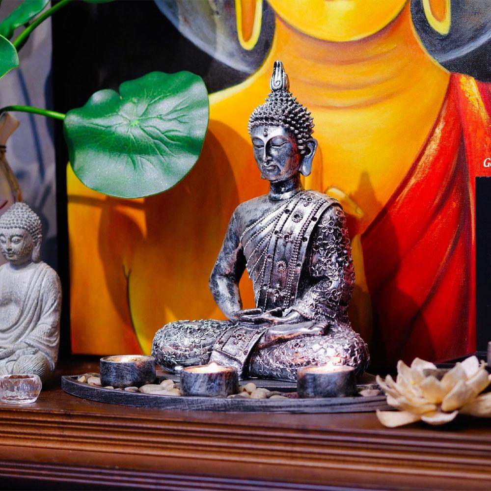✨Tượng phật thiền định kèm đế nến tặng 10 cốc nến bơ - Mani Decor