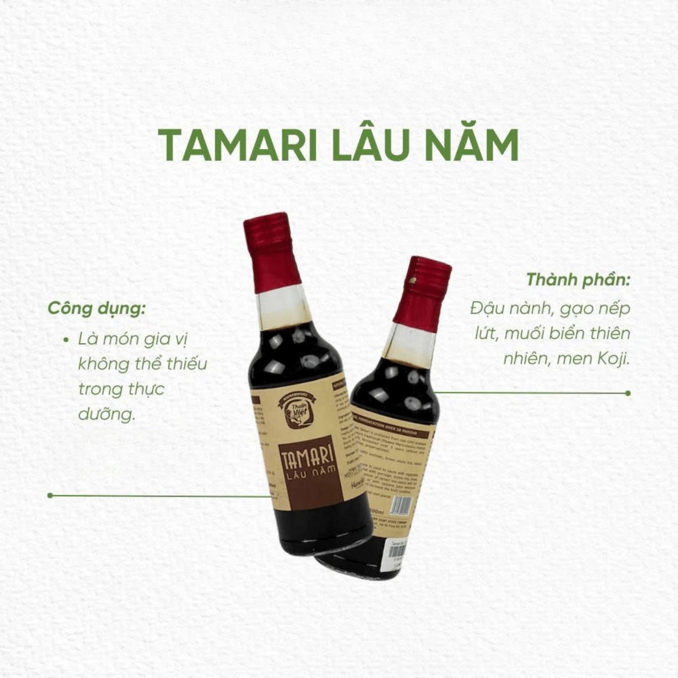 Mua tại TiktokTên sản phẩm: Tương Tamari Homefood 300ml/500ml - Tinh hoa lên men tự nhiên Tương Tamari Homefood là loại tương lâu năm, được sản xuất từ đậu nành không biến đổi gen theo phương pháp truyền thống Ohsawa. Tamari được ủ lên men tự nhiên trong 3 năm, hoàn toàn không hóa chất, không chất bảo quản, không chất điều vị. Đây là gia vị đặc biệt tốt cho sức khỏe, giúp món ăn dậy vị đậm đà và giàu dinh dưỡng.