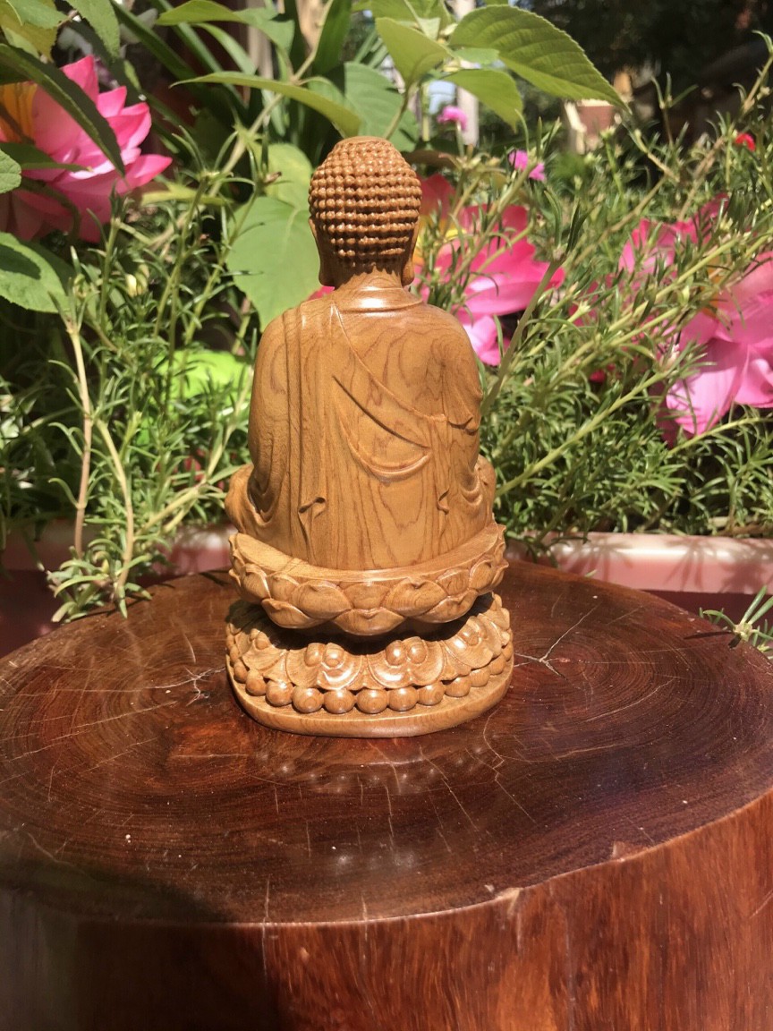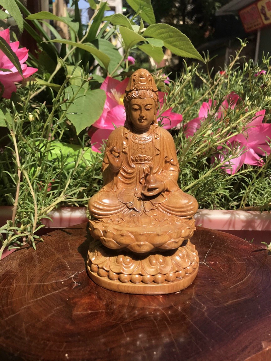 được làm bằng chất liệu gỗ bách xanh liền khối tự nhiên 100% _ Kt cao 15×9×9cm  _ Tượng được chạm khắc gọt tỉa vô cùng ti mi tinh xảo kỳ công .Đi hầu hết