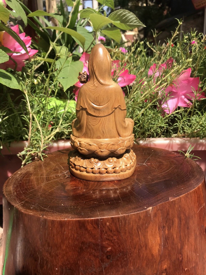 _ Tượng mẹ quan âm bồ tát được làm bằng chất liệu gỗ bách xanh liền khối tự nhiên 100% _ kt cao 15x9x9cm  _ Tượng được chạm khắc gọt tỉa vô cùng tỉ mỉ