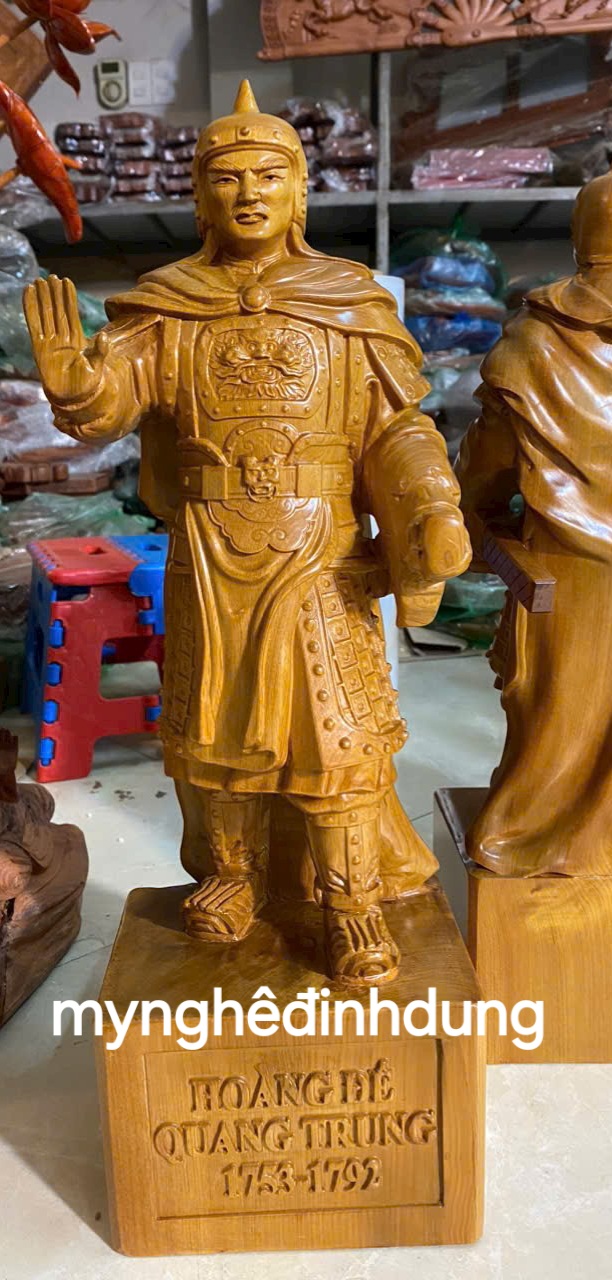 Mua tại TiktokTượng vua hoàng đế quang trung được làm bằng chất liệu gỗ bách xanh liền khối tự nhiên 100% Kt cao 40x13x11cm _ Tượng được chạm khắc vô cùng tỉ mỉ tinh xảo kỳ công. ĐI HẦU tất cả mọi chi tiết góc ngách nội dung hoa văn của Tượng đều được gọt tỉa chỉnh sửa sắc nét hoàn toàn bằng tay thủ công truyền thống.
